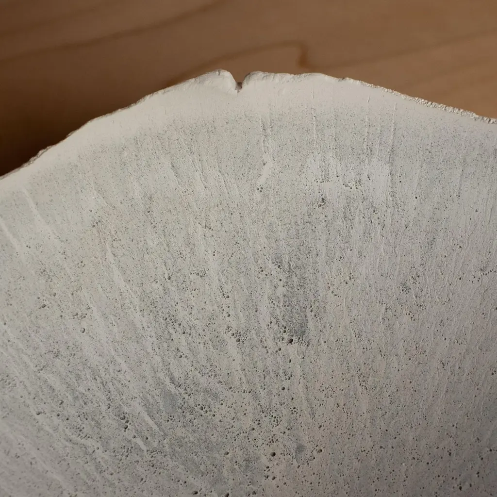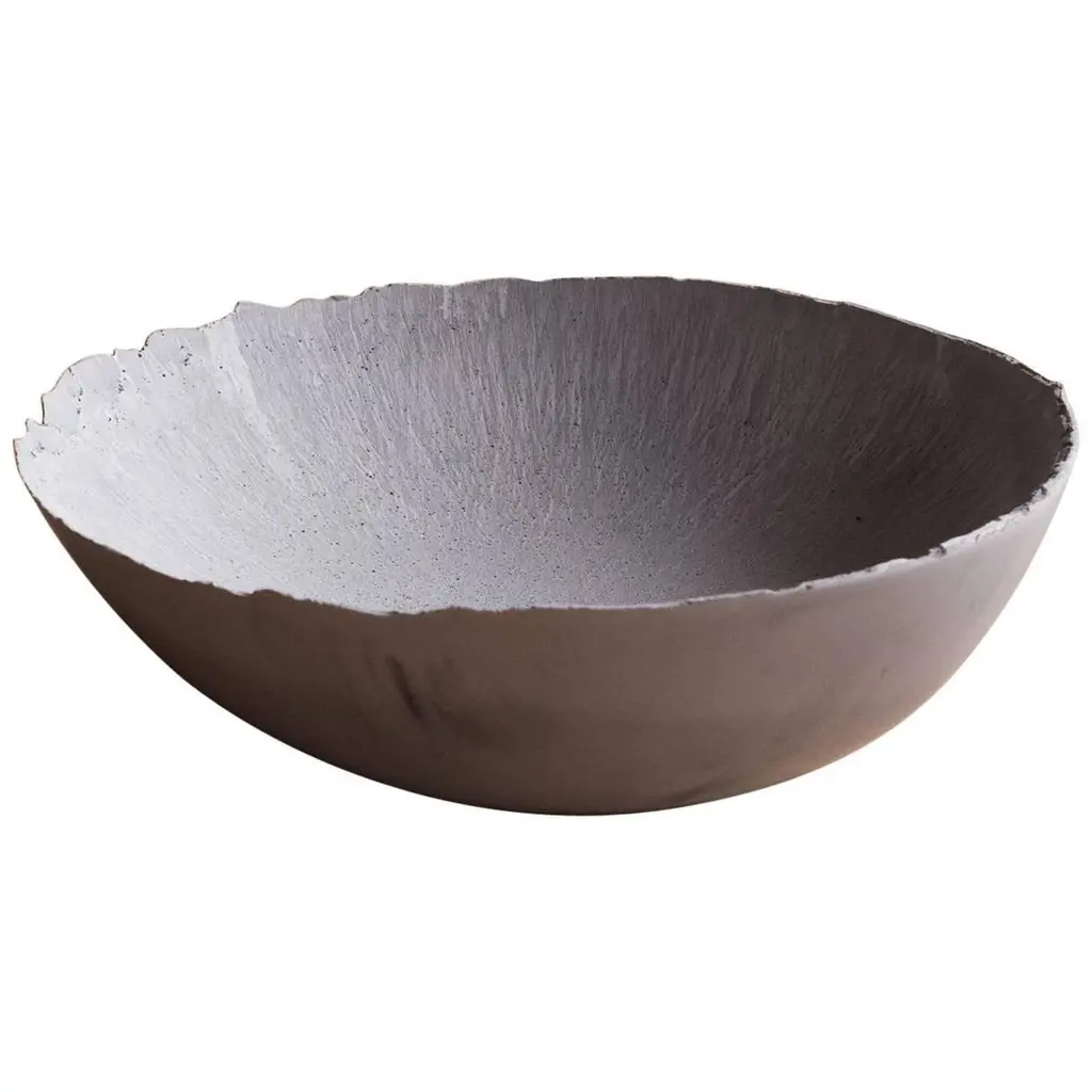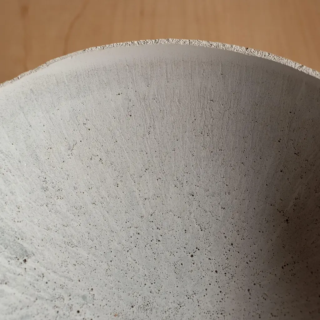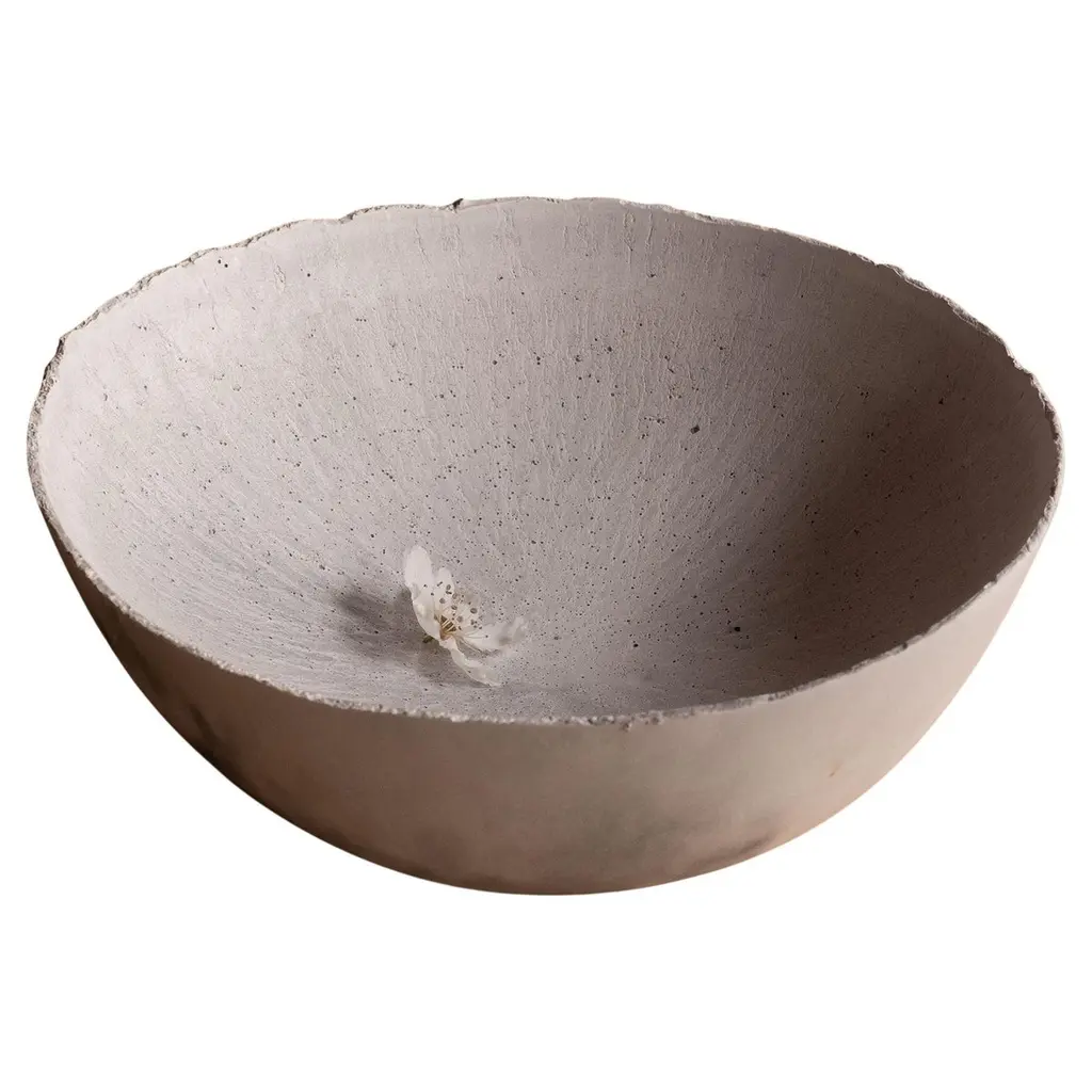 An edition of 150 unique bowls, the concrete Series by UMÉ Studio expresses the tension between heavy concrete and its delicate edge generated by hand pouring. While one assumes concrete should be strong and durable, it is, at its core, fragile. This duality invites touch and contemplation, making it the perfect vessel for daily inspiration and display. Each cast is a unique piece, handmade and one of a kind. Bowl 446GreyCast concrete / Gypsum cement / Mica and natural pigments Items are inherently fragile and should be handled with care, kept away from liquids. Bowls are not food safe.Pieces can be customized if ordered in quantities of six or moreSize: Diameter between 3 inches (7cm) - 13 inches (33cm)Height: Between 3 inches (7cm) - 8 inches (20cm)Color: White speckle, grey speckle, black.