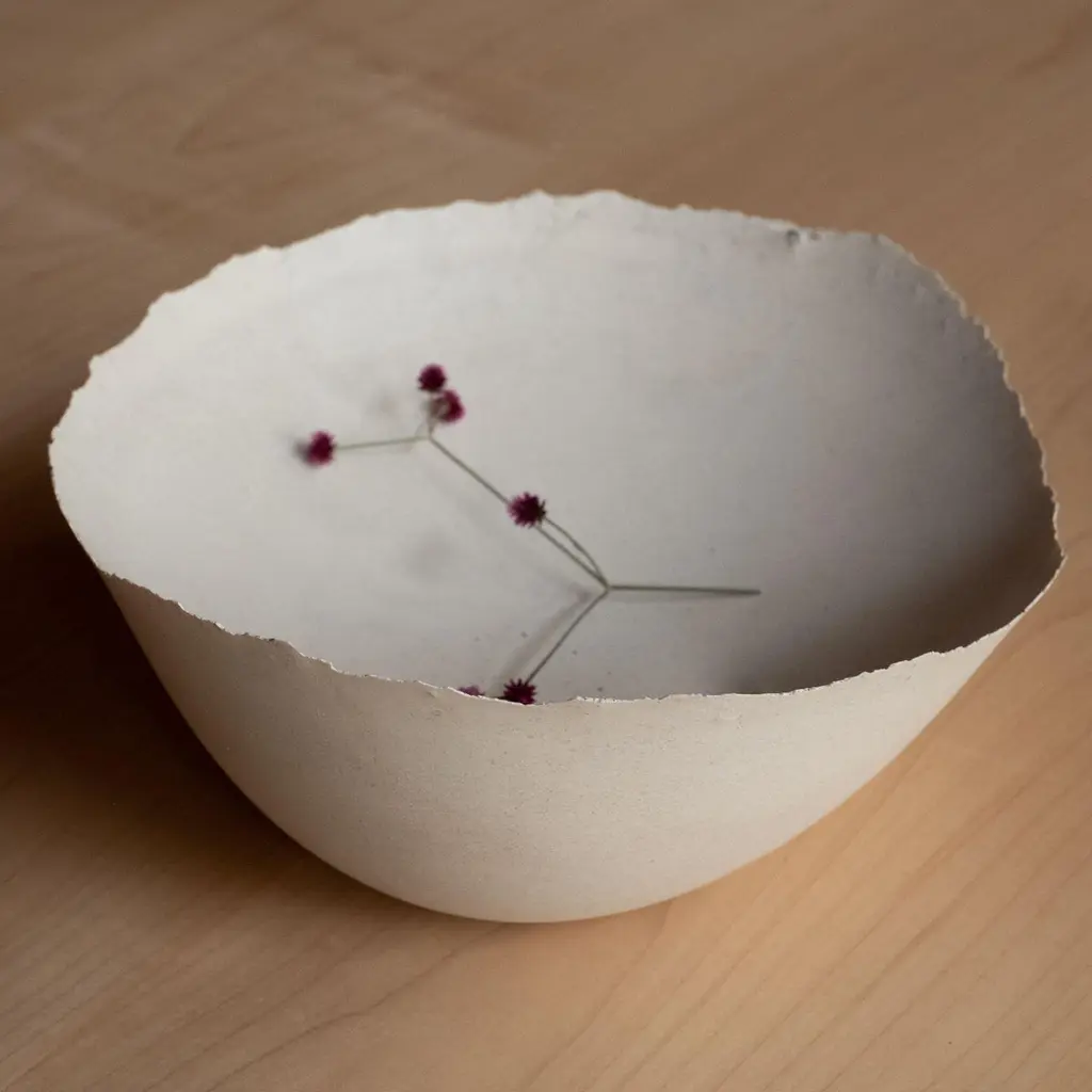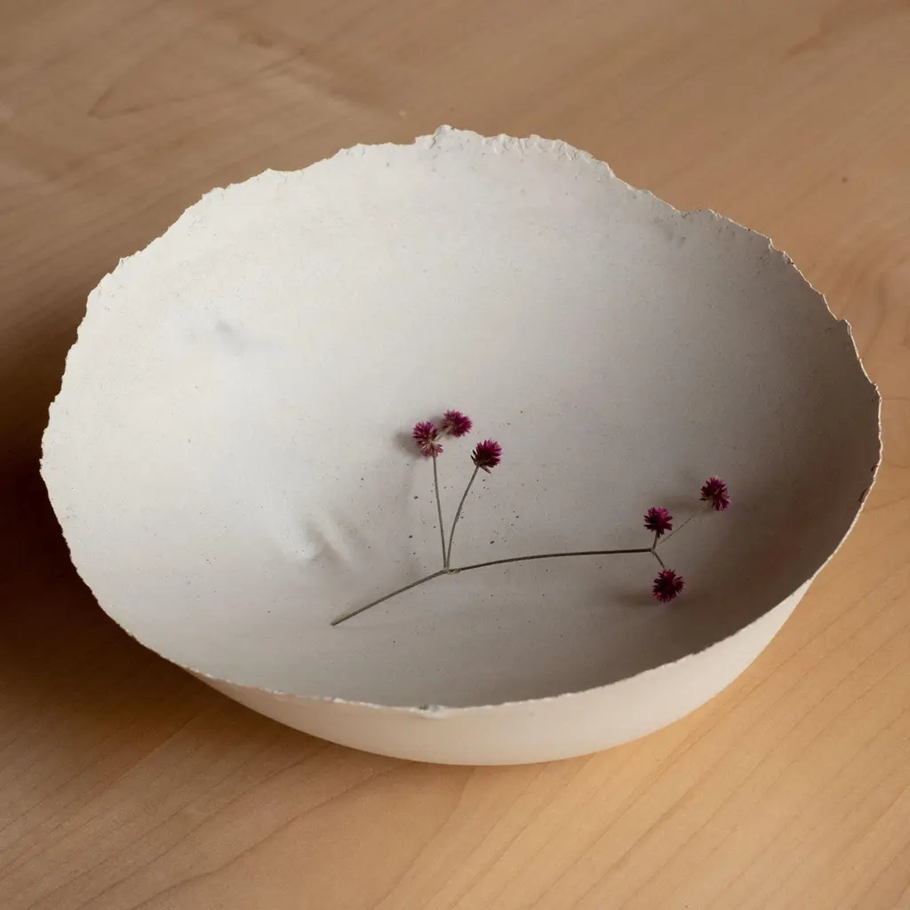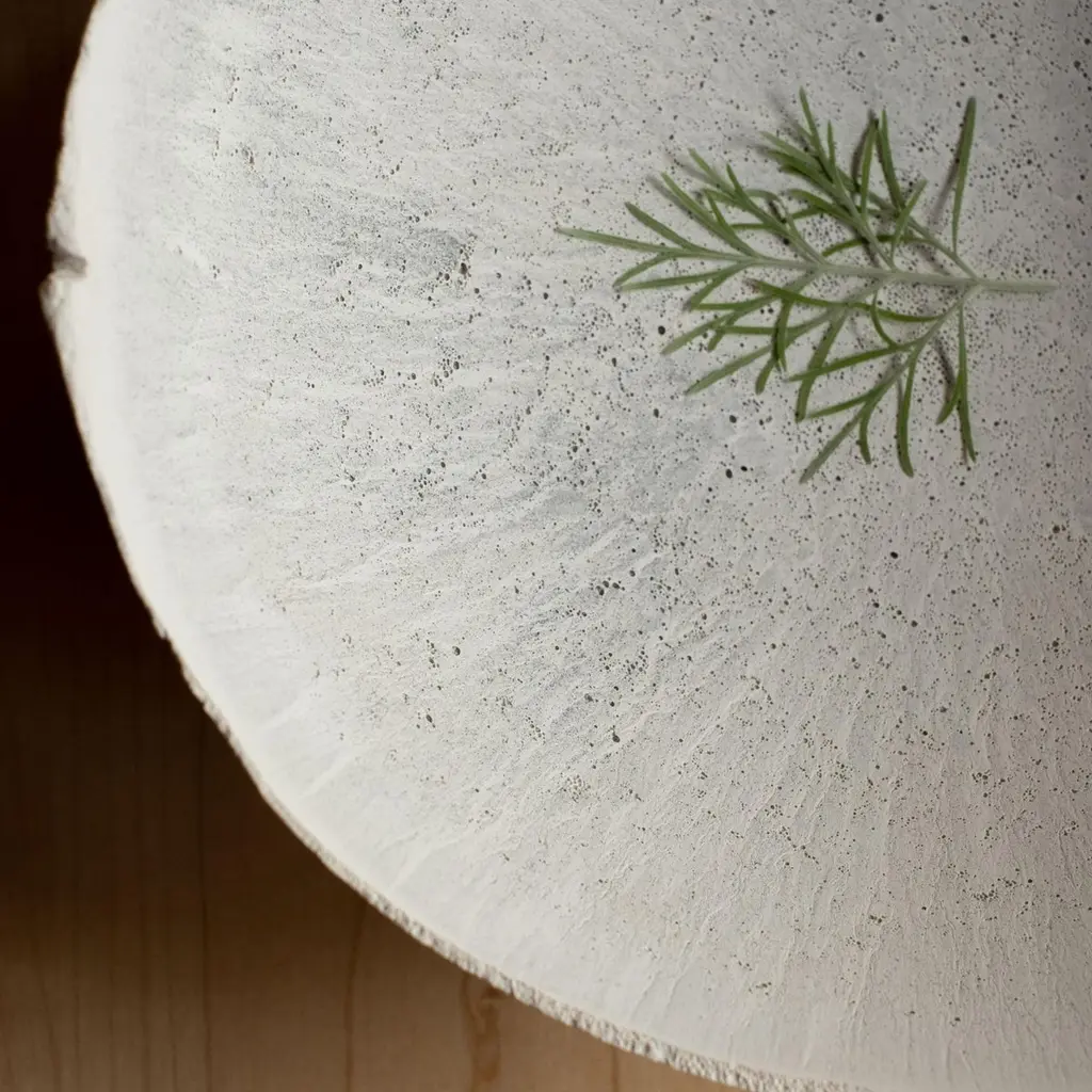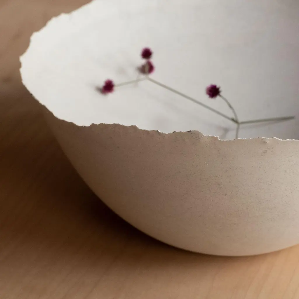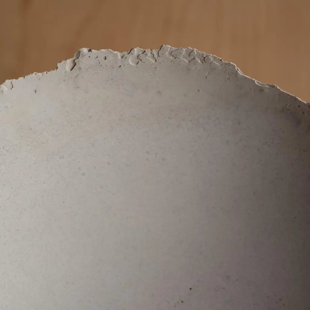 An edition of 150 unique bowls, the concrete Series by UMÉ Studio expresses the tension between heavy concrete and its delicate edge generated by hand pouring. While one assumes concrete should be strong and durable, it is, at its core, fragile. This duality invites touch and contemplation, making it the perfect vessel for daily inspiration and display. Each cast is a unique piece, handmade and one of a kind. Bowl 446GreyCast concrete / Gypsum cement / Mica and natural pigments Items are inherently fragile and should be handled with care, kept away from liquids. Bowls are not food safe.Pieces can be customized if ordered in quantities of six or moreSize: Diameter between 3 inches (7cm) - 13 inches (33cm)Height: Between 3 inches (7cm) - 8 inches (20cm)Color: White speckle, grey speckle, black.