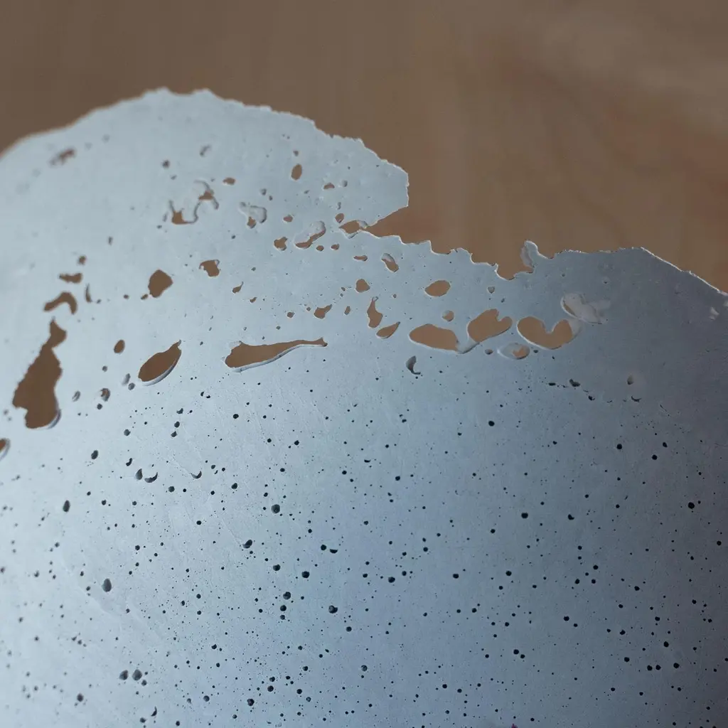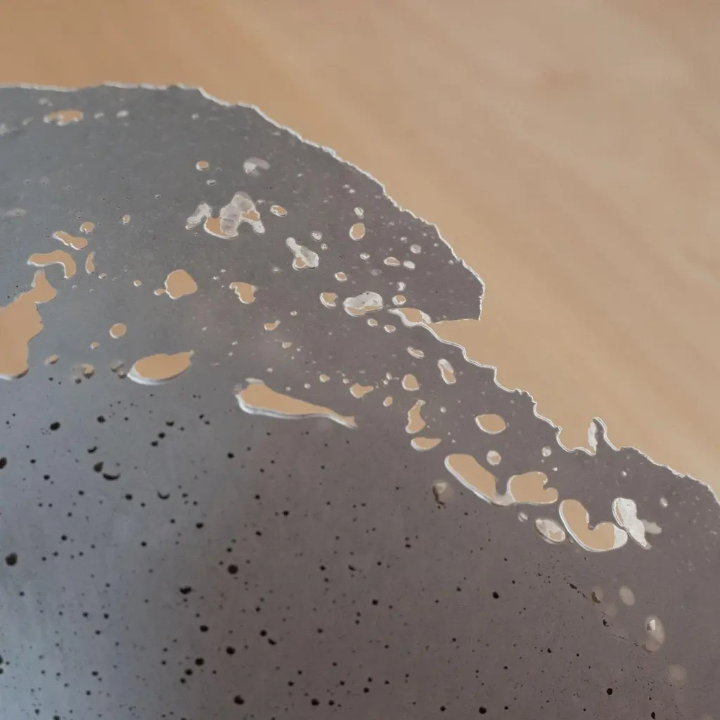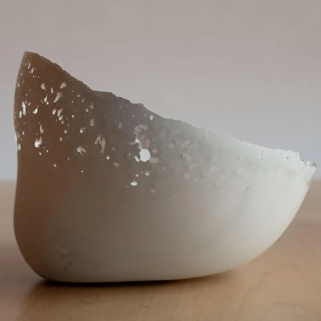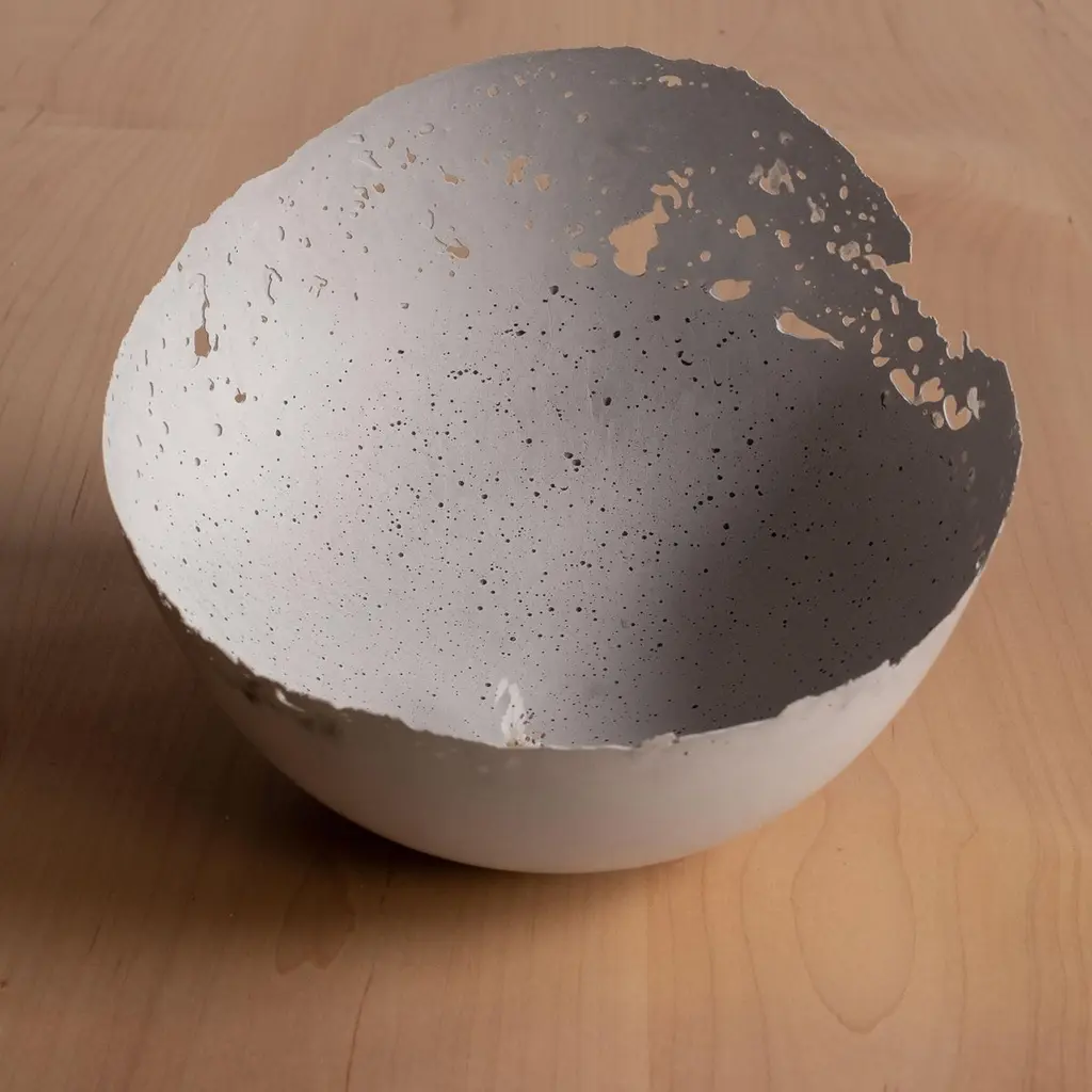 An edition of 150 unique bowls, the concrete Series by UMÉ Studio expresses the tension between heavy concrete and its delicate edge generated by hand pouring. While one assumes concrete should be strong and durable, it is, at its core, fragile. This duality invites touch and contemplation, making it the perfect vessel for daily inspiration and display. Each cast is a unique piece, handmade and one of a kind. Bowl 474GreyCast concrete / Gypsum cement / Mica and natural pigments Items are inherently fragile and should be handled with care, kept away from liquids. Bowls are not food safe.Pieces can be customized if ordered in quantities of six or moreSize: Diameter between 3 inches (7cm) - 13 inches (33cm)Height: Between 3 inches (7cm) - 8 inches (20cm)Color: White speckle, grey speckle, black.