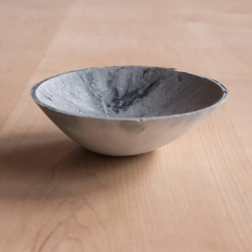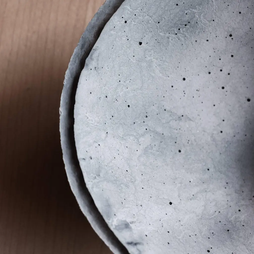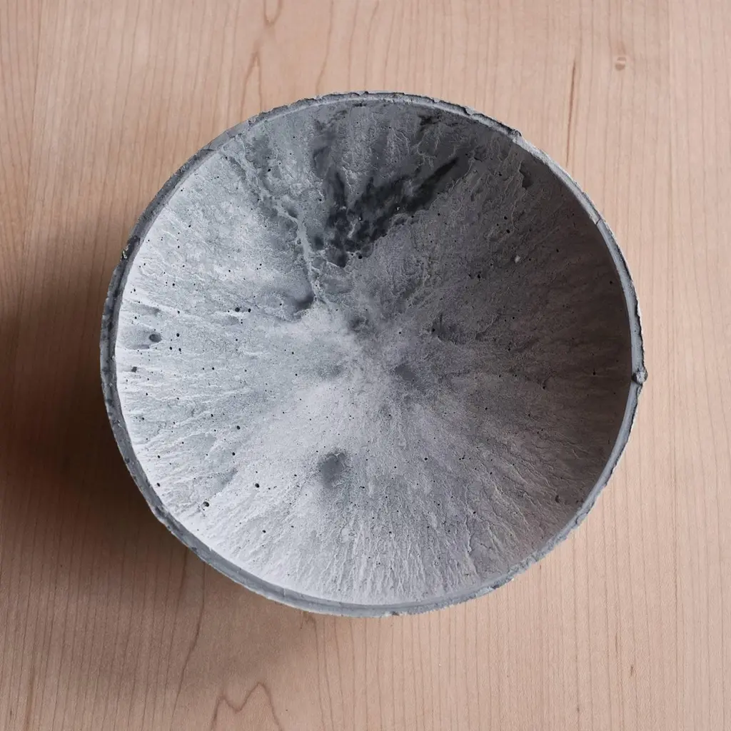 A collection of 200 unique bowls, the Concrete Series by UMÉ Studio expresses the tension between heavy concrete and its delicate edge generated by hand pouring. While one assumes concrete should be strong and durable, it is, at its core, fragile. This duality invites touch and contemplation, making it the perfect vessel for daily inspiration and display. Each cast is a unique piece, handmade and one of a kind. Set of three small bowlsBlackCast concrete / Gypsum cement / Mica and natural pigments Items are inherently fragile and should be handled with care, kept away from liquids. Bowls are not food safe.Pieces can be customized if ordered in quantities of 6 or moreSize: Diameter between 3 inches (7cm) - 13 inches (33cm)Height: Between 3 inches (7cm) - 8 inches (20cm)Color: White speckle, grey speckle and black.