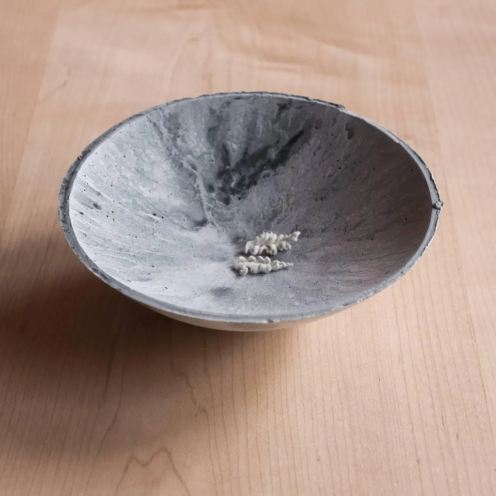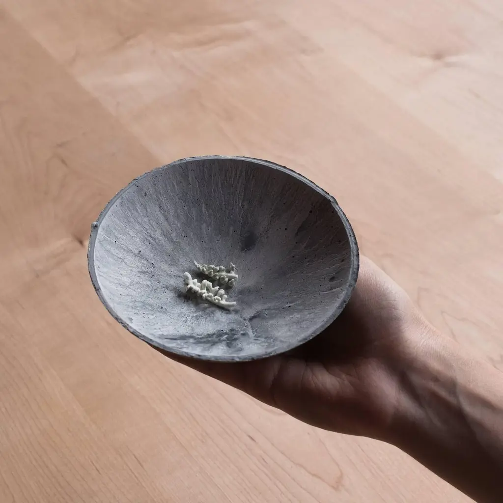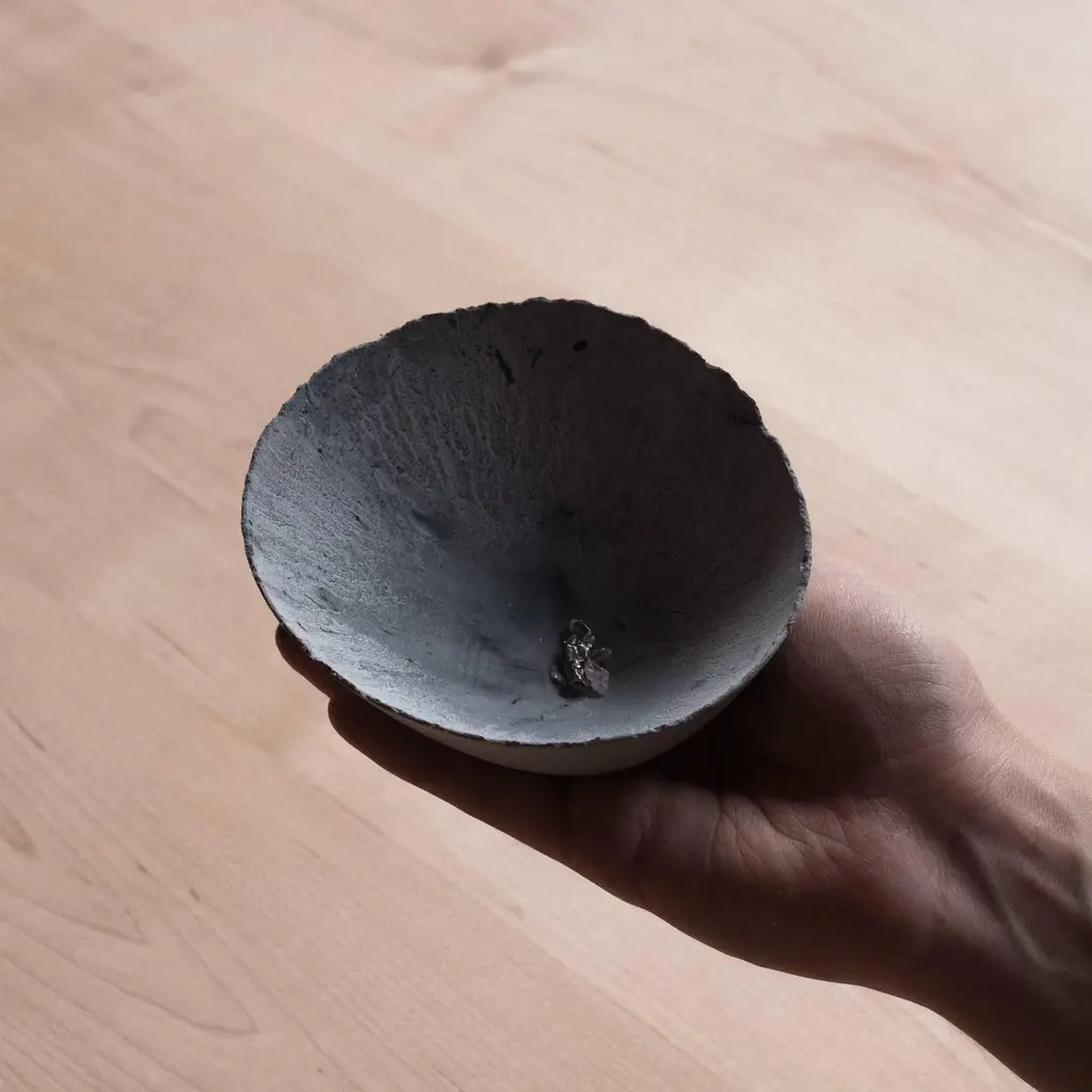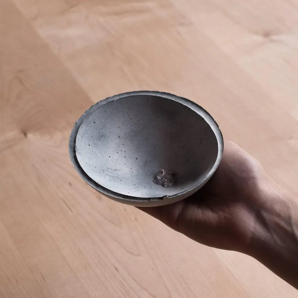 A collection of 200 unique bowls, the Concrete Series by UMÉ Studio expresses the tension between heavy concrete and its delicate edge generated by hand pouring. While one assumes concrete should be strong and durable, it is, at its core, fragile. This duality invites touch and contemplation, making it the perfect vessel for daily inspiration and display. Each cast is a unique piece, handmade and one of a kind. Set of three small bowlsBlackCast concrete / Gypsum cement / Mica and natural pigments Items are inherently fragile and should be handled with care, kept away from liquids. Bowls are not food safe.Pieces can be customized if ordered in quantities of 6 or moreSize: Diameter between 3 inches (7cm) - 13 inches (33cm)Height: Between 3 inches (7cm) - 8 inches (20cm)Color: White speckle, grey speckle and black.