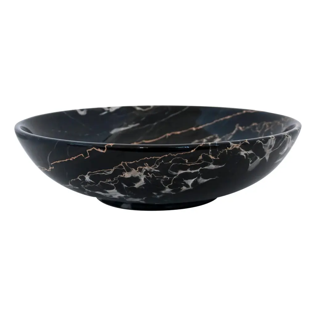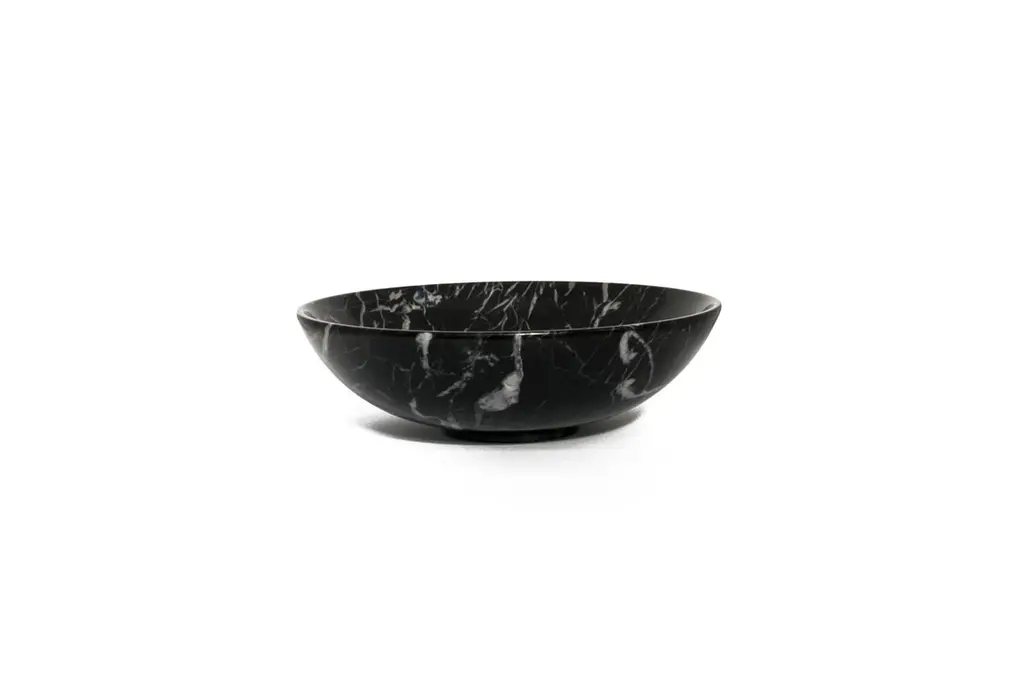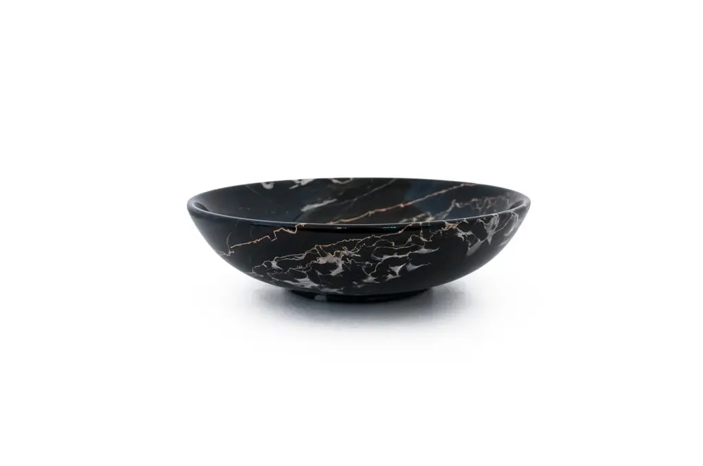 Small fruit bowl in Portoro marble, extracted and processed in Italy. You have a 100% made in Italy product.It is ideal for fruit and to present food.Each piece is in a way unique (since each marble block is different in veins and shades) and handmade by Italian artisans specialized over generations in processing the marble. Slight variations in shape, color and size are to be considered a guarantee of an handmade creation.This object gives a distinct touch to your house, kitchen and table, to your office and can be a sophisticated and original gift. Measures: Diameter 23.5cm.Do not put vinegar or lemon on the surface, only wash with water and neutral soap.