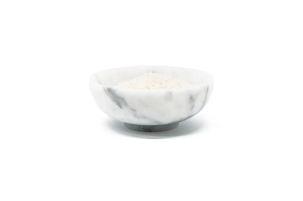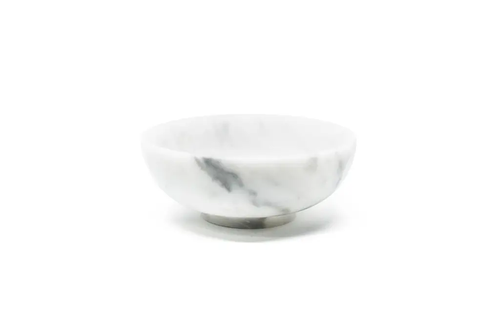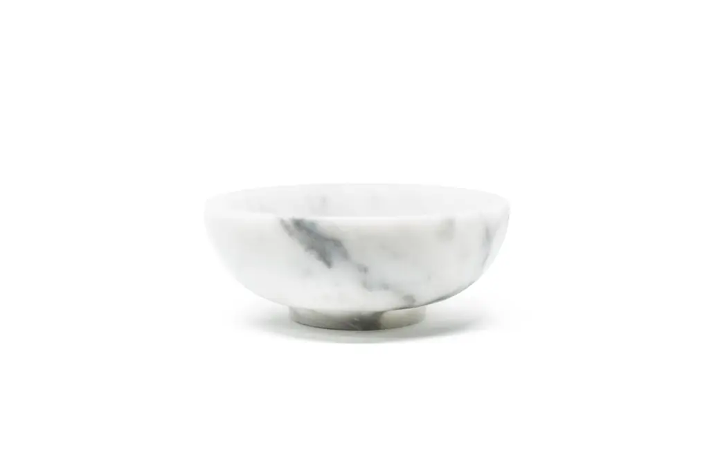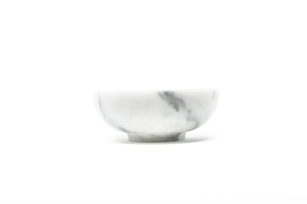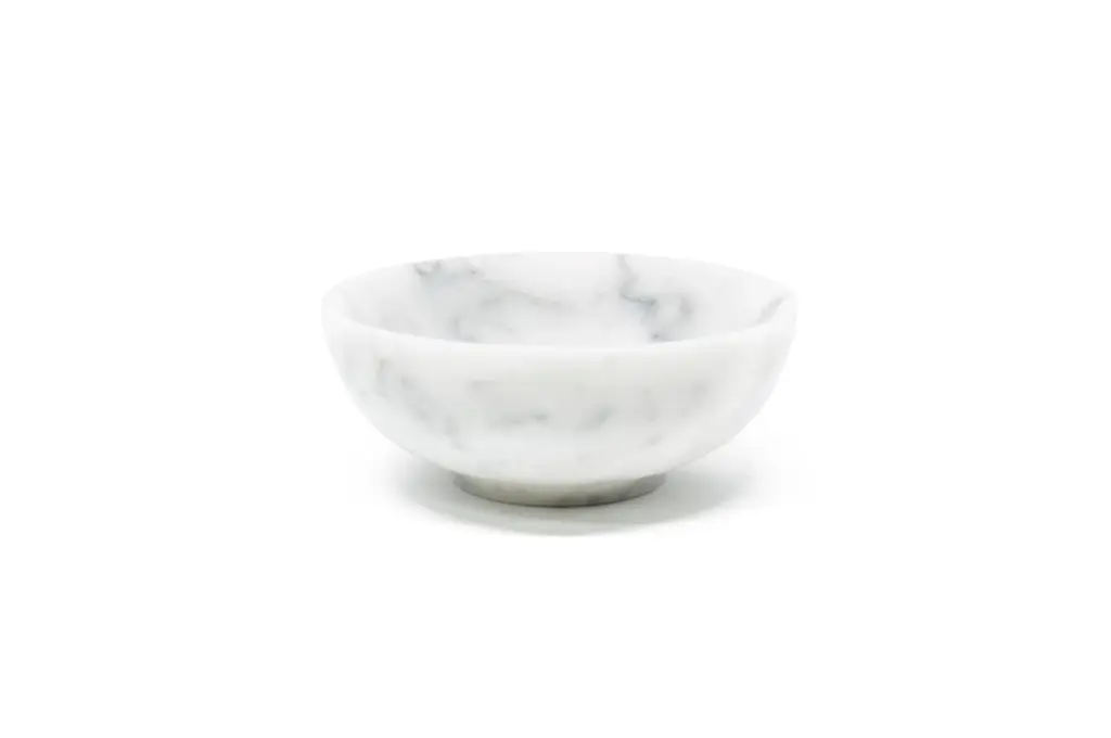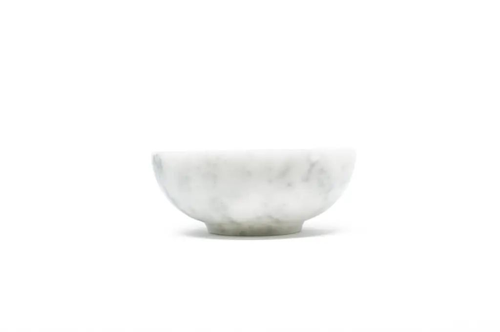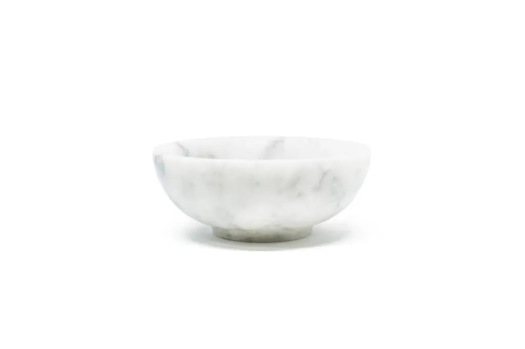 Rice bowl in satin white Carrara marble, extracted and processed in Italy. You have a 100% made in Italy product.Each piece is in a way unique (since each marble block is different in veins and shades) and handmade by Italian artisans specialized over generations in processing the marble. Slight variations in shape, color and size are to be considered a guarantee of an handmade creation.This object gives a distinct touch to your house, kitchen and table, to your office and can be a sophisticated and original gift. Do not put vinegar or lemon on the surface, only wash with water and neutral soap.