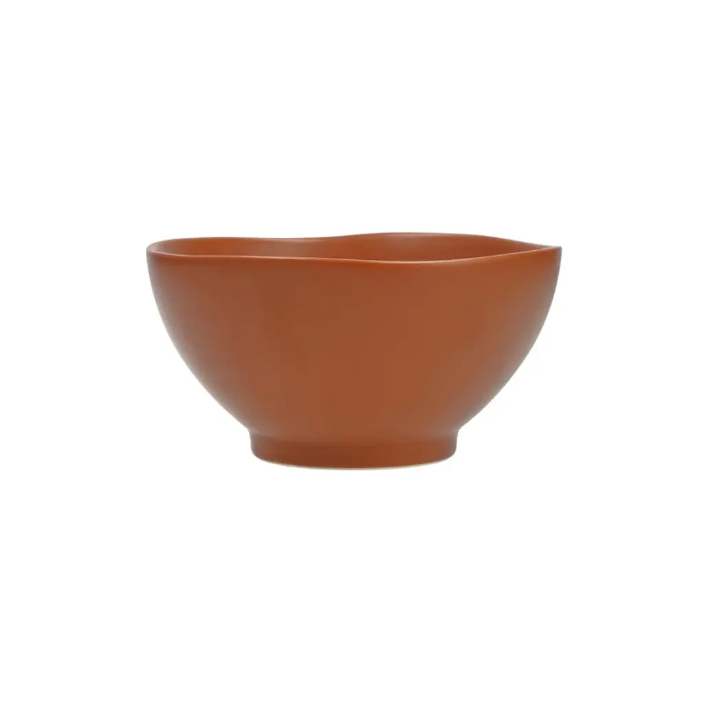 Form + function. This subtly sculptural rice bowl showcases wavering organic edges + a matte neutral hue. Crafted from durable stoneware, it resists scratching and chipping and is safe for use in the dishwasher, oven, and microwave. Arrives as a set of four + nests to save cabinet space between meals.