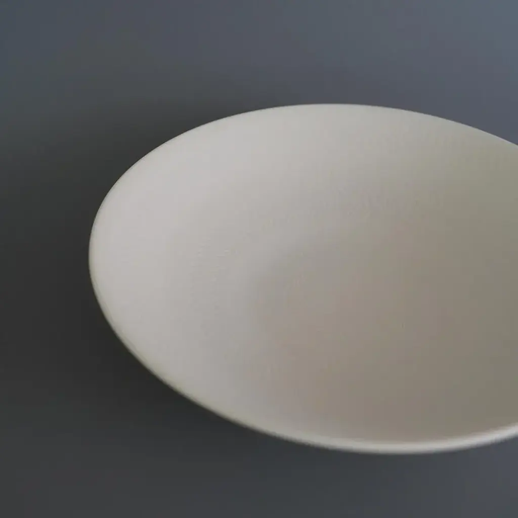 Helice fruit bowl by Studio Cúze. Dimensions: W 27 x H 6.5 cm. Materials: ceramic. The Helice Fruit Bowl is an all-white bowl with a special quality and a unique handmade pattern. The bowl offers an even and precise shape, which is perfectly complemented by the meticulously incorporated Helice pattern. The fine structure becomes particularly noticeable when touched, giving an unprecedented feeling of high quality. The bowl offers a variety of different uses. Of course, the bowl is also particularly suitable for the storage or presentation of the finest fruits.