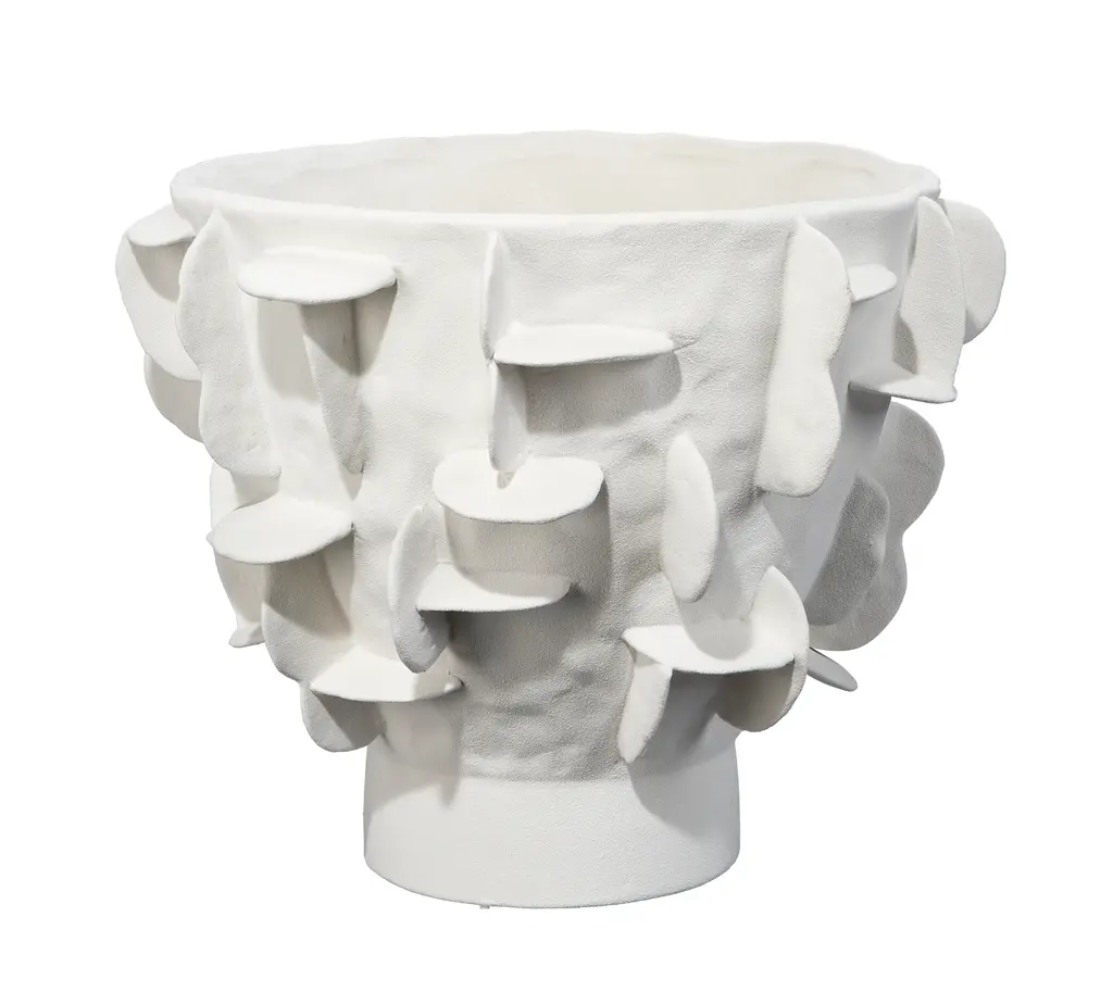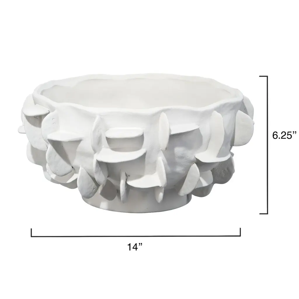 Beautifully handcrafted of fine ceramic, the surface of this bowl is emblazoned with hand-formed ceramic paillettes. A sophisticated, sculptural vessel that can be customized with your favorite filler or shown off as is, try displaying with other ceramic vessels in the same color for a designer inspired grouping!