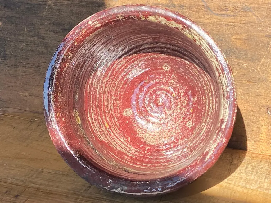 A unique aquatic-themed stoneware bowl by noted American painter/ceramicist/architect Henry Varnum Poor. The bowl features a motif of an Atlantic sturgeon and another smaller fish. Pictures are taken in bright sunlight. A rare and desirable piece by Poor. The bowl is signed HVP 52 on the underside of the base.