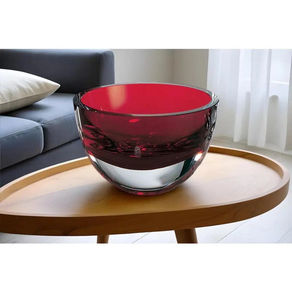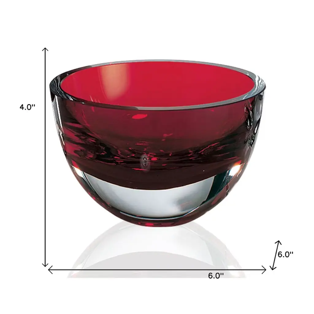 Homeroots 6" Red Mouth Blown Crystal Thick Walled Bowl