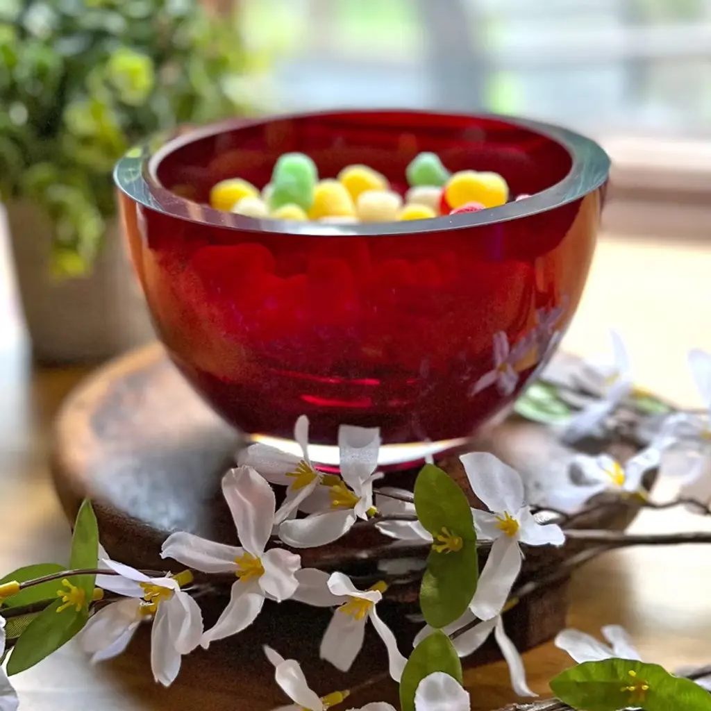 These Mouth Blown European inspired Penelope Bowls Are 6 Inches In Diameter And Prove Good Things Come In Small Packages. Their Popularity Has Caused The Production Of These Dynamos In A Rainbow Of Colors. The Penelope Bowls are made with multiple layers of glass which brings out beautiful contrast. Penelope bowls are perfect for nuts, candies and dips. The deep red color is a stunning decor accent anytime and is perfect for Valentines Day or Christmas Holiday season
