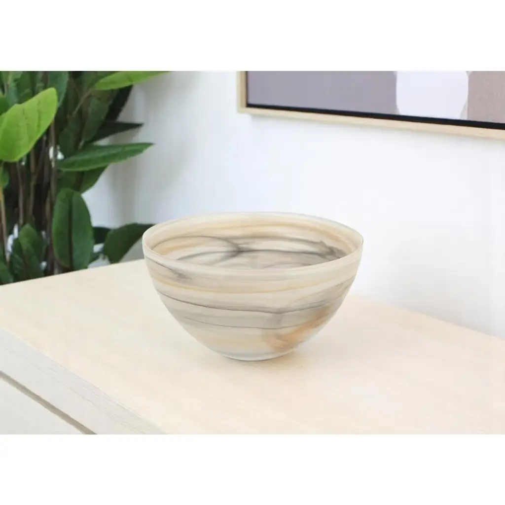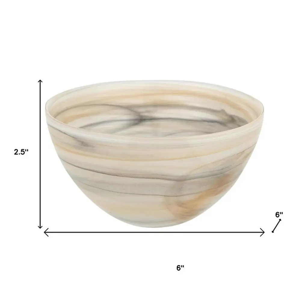 Homeroots 6" Taupe And White Alabaster Glass Round Candy Or Nut Bowl