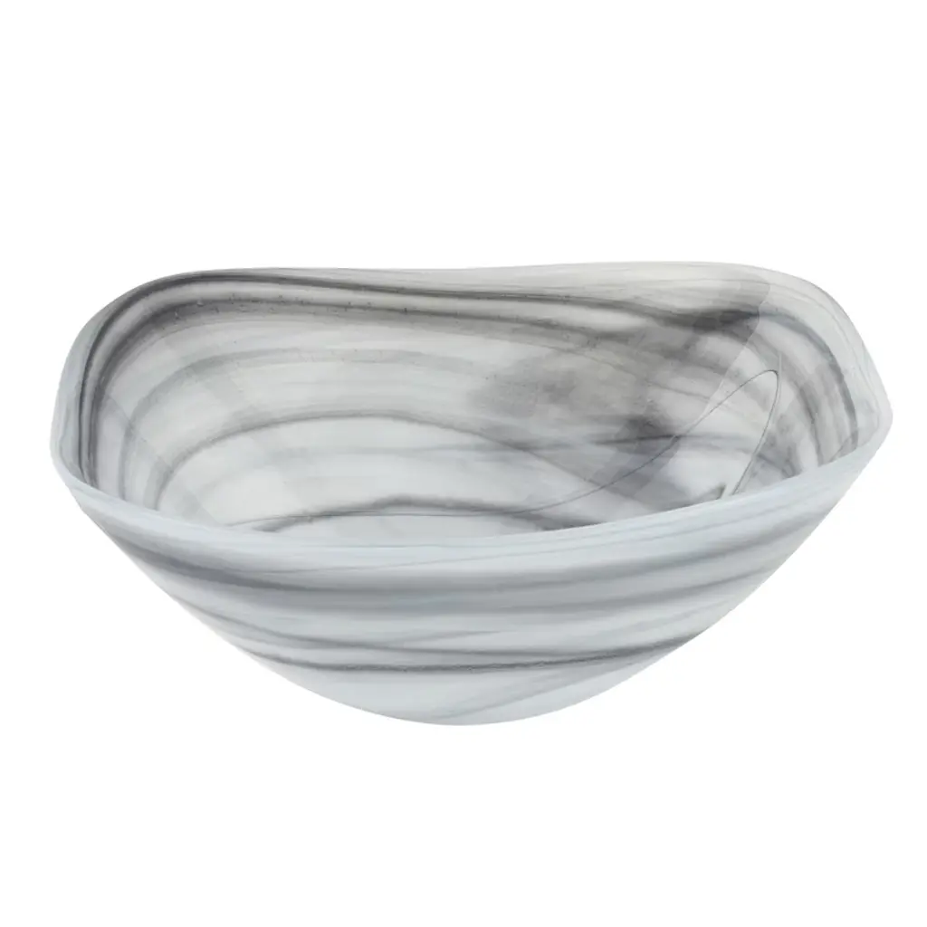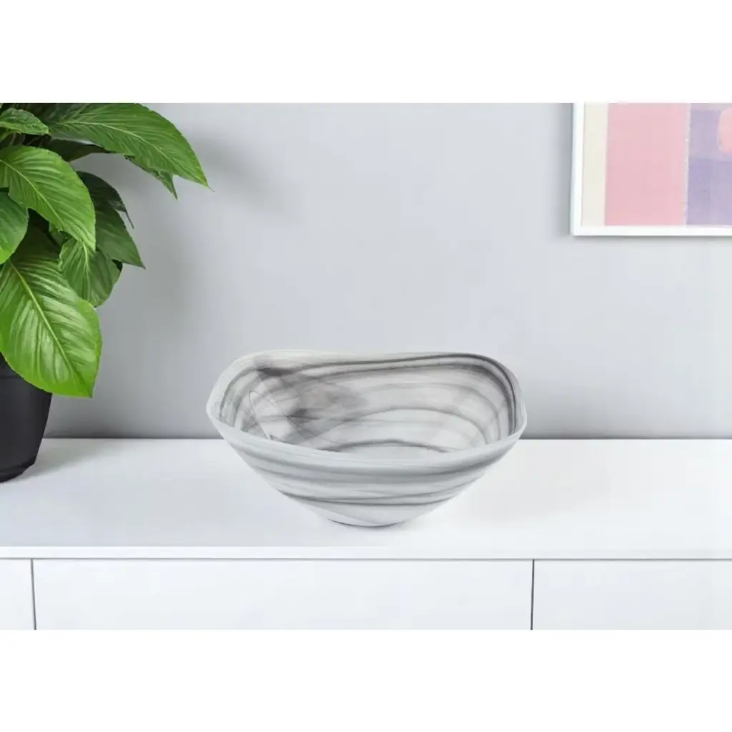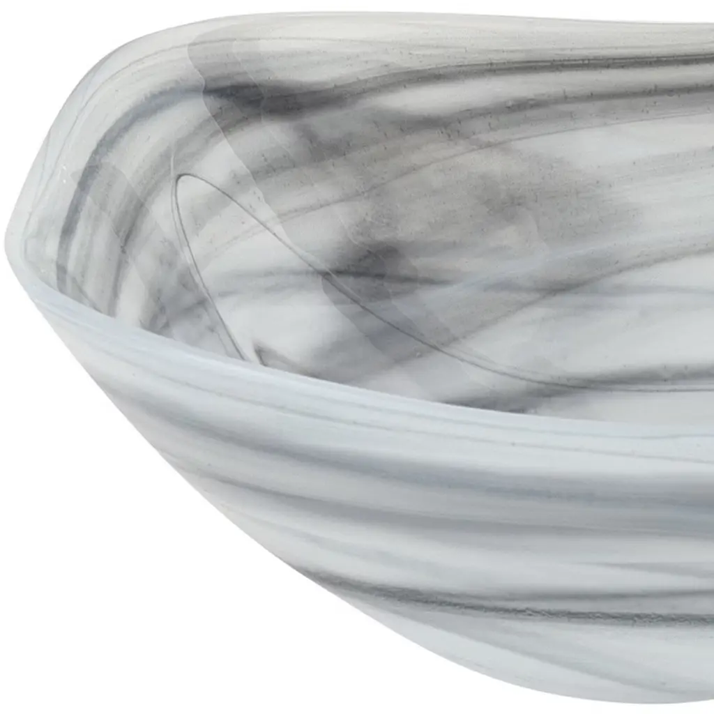 Set of two 6-inch gray and white alabaster glass square candy or nut bowls adds a touch of elegance to any table setting. European handcrafted from high-quality alabaster glass, these bowls showcase exceptional artistry and attention to detail. Designed in a soft corner square shape, they will enhance the presentation of whatever you choose to fill them with; or create a striking decorative display on their own. 2.5-inch h x 6-inch w x 6-inch d.