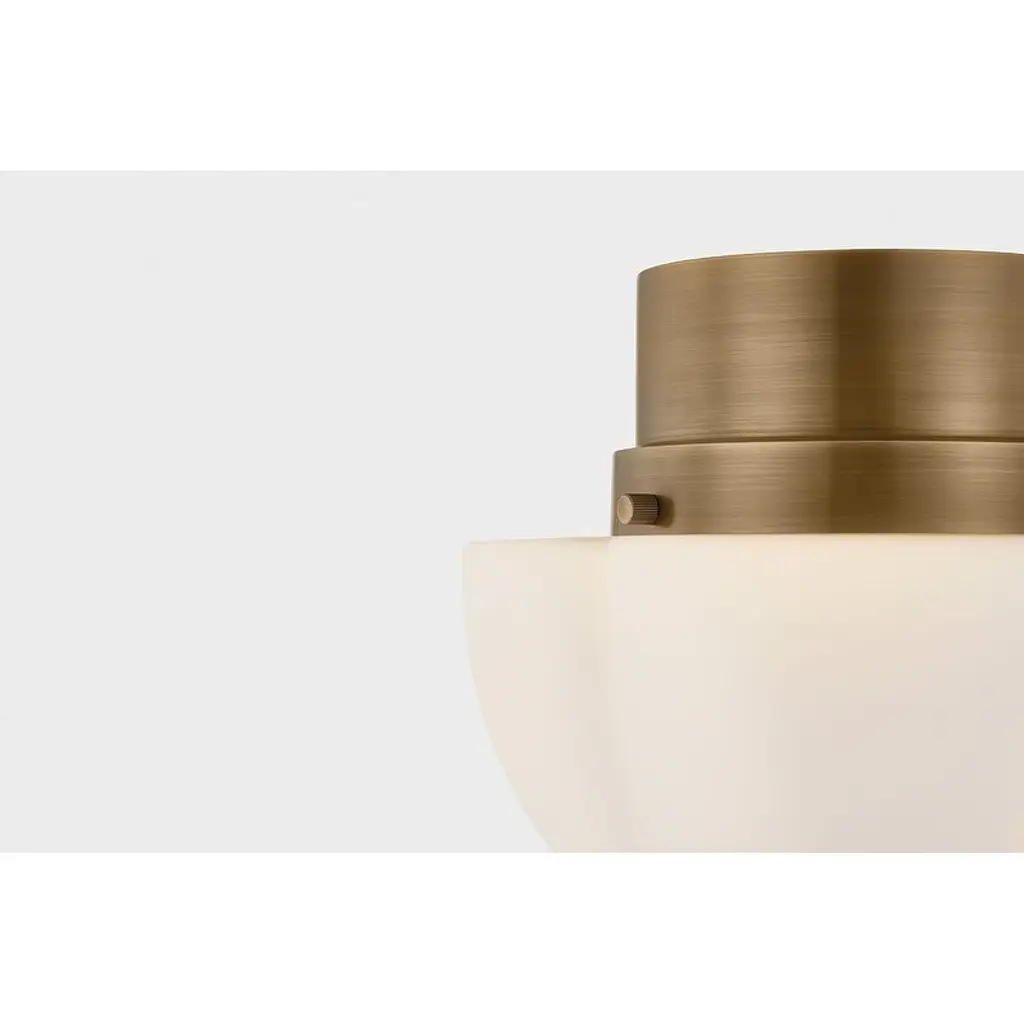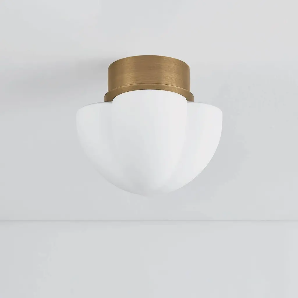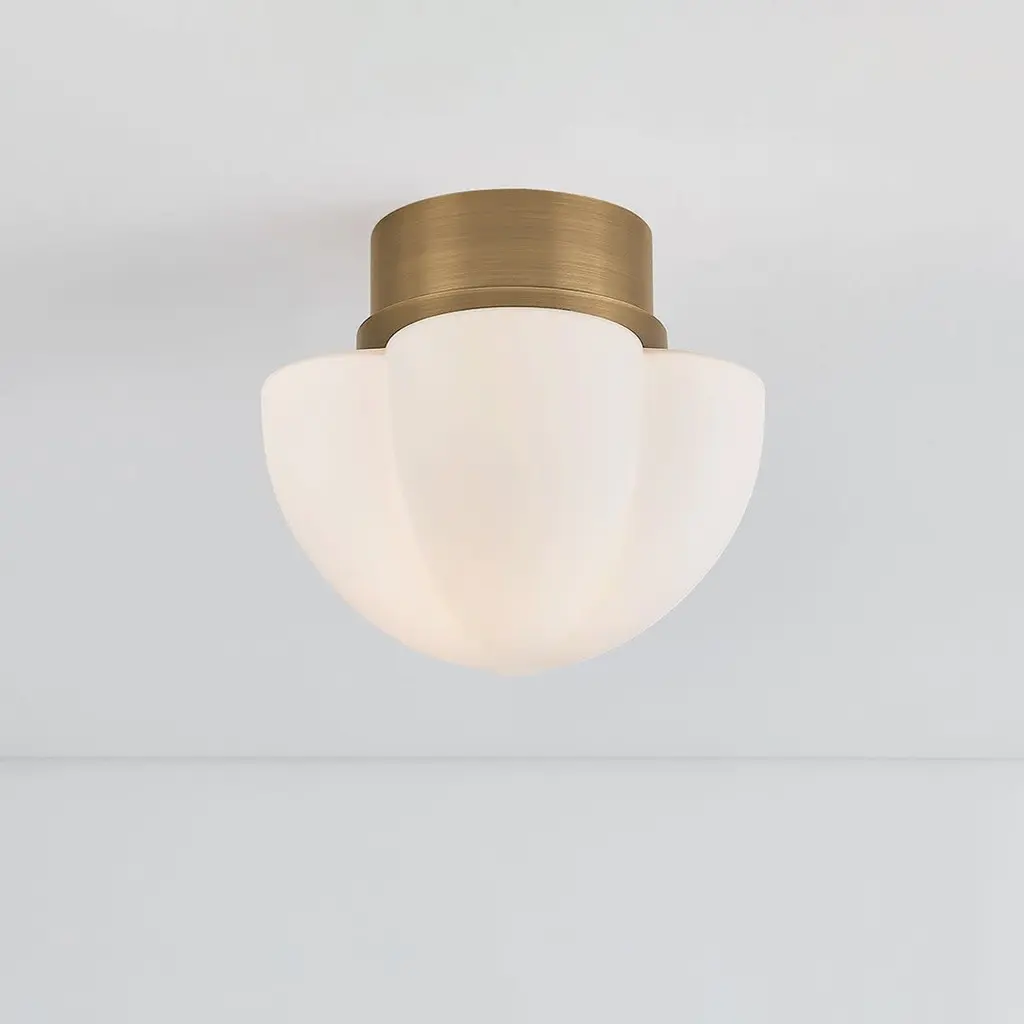 A stylish alternative to can lighting, Seabrook introduces thoughtful forms to spaces that deserve more than a passing glance. Available in two sizes, this charming flush mount features a gently scalloped botanical shade that adds a soft touch to any room. The opal glass creates a diffused glow, while the finish of the metalwork lends a warm tone. Designed as a transition piece, Seabrook enhances vestibules between bedrooms and bathrooms as well as landing spaces.Features:Dimensions:Electrical Specifications: