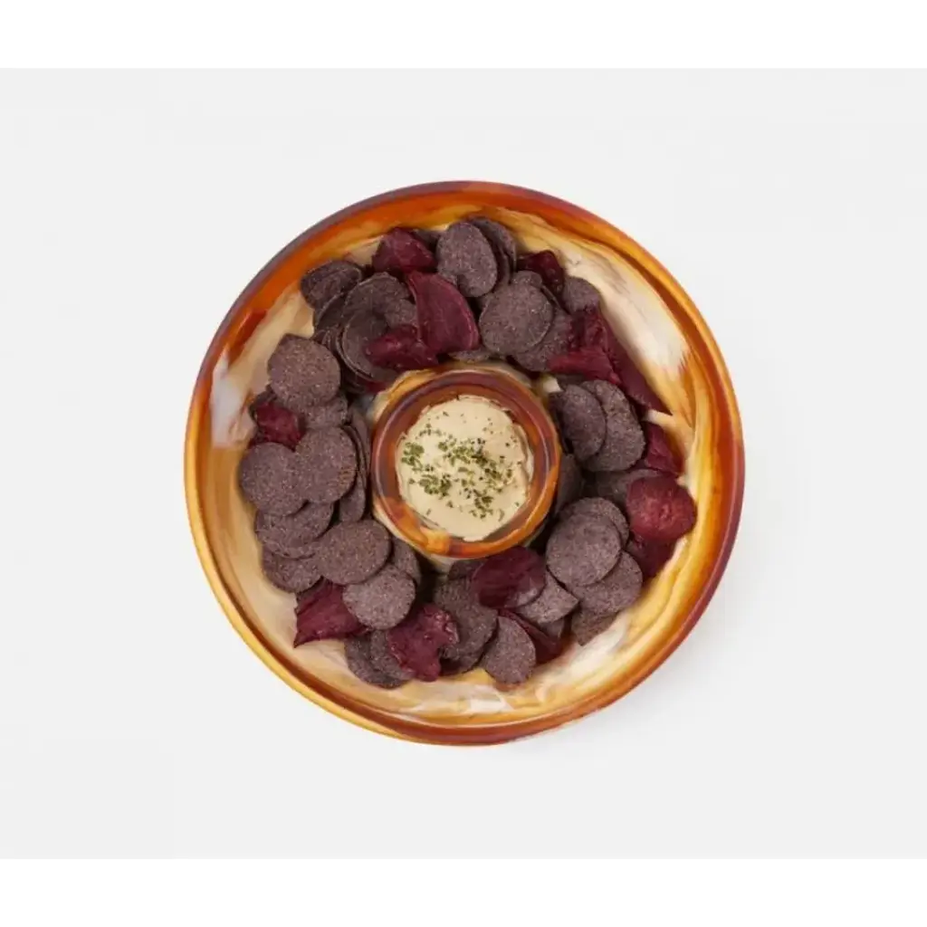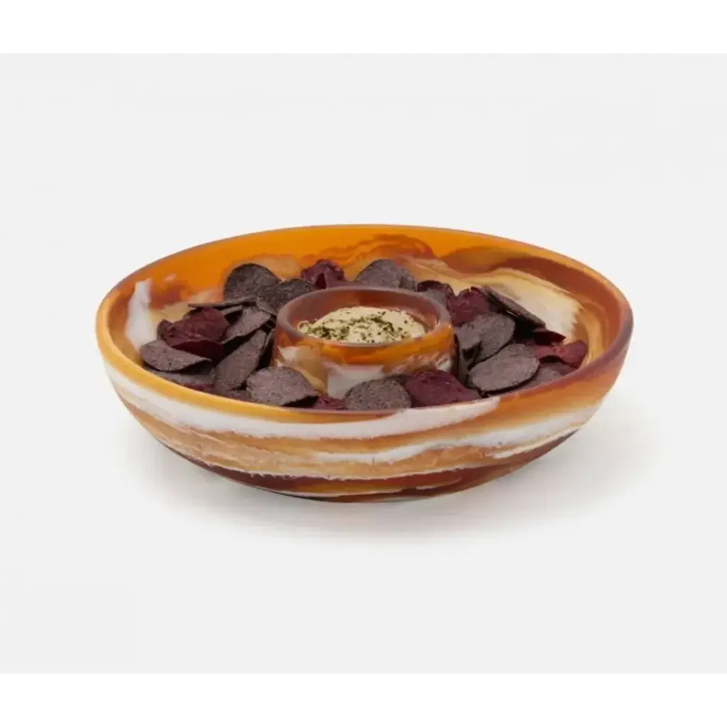 Hugo Amber Swirled, Chip And Dip Bowl, Resin