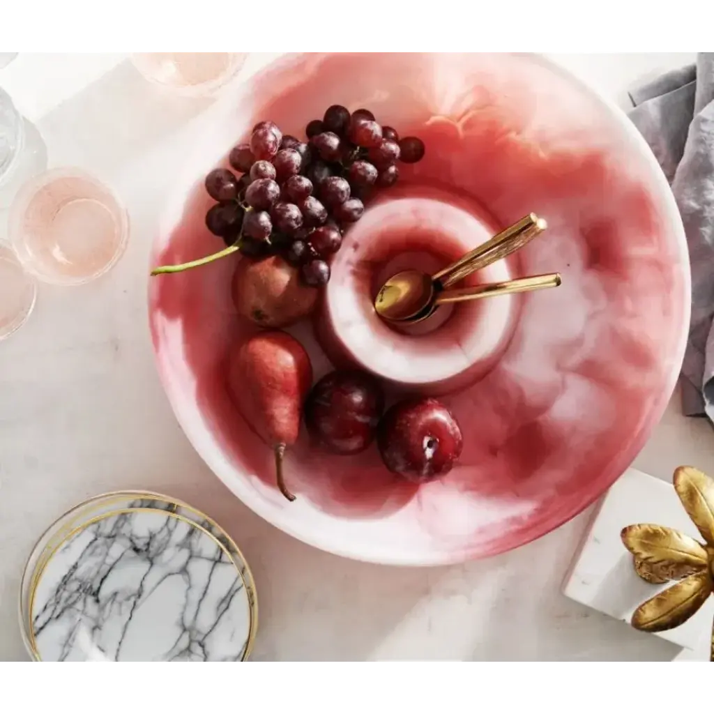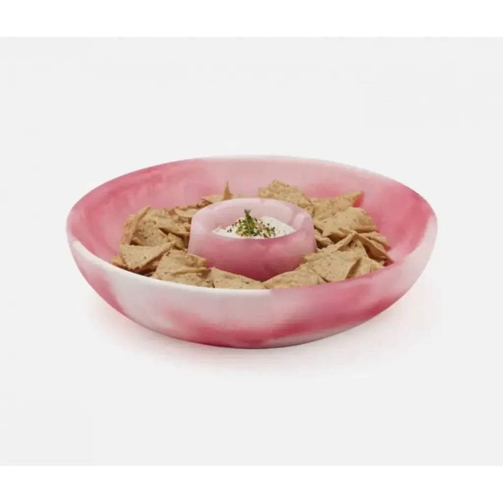 Hugo Pink Swirled, Chip And Dip Bowl, Resin