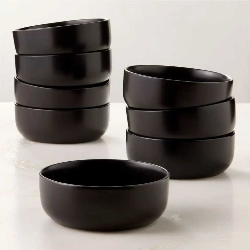 Hyacinth Black Soup Bowls With Reactive Glaze Set Of 6