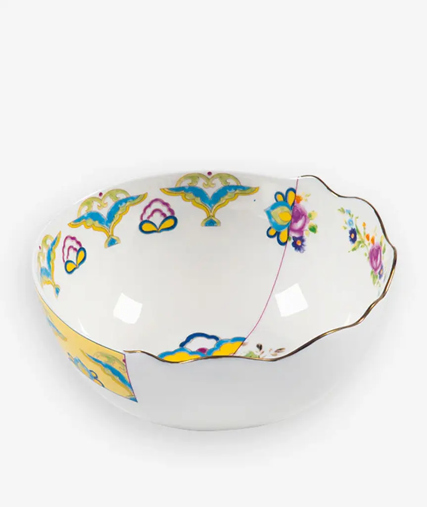 The split personality Hybrid dinnerware series fuses traditional Eastern and Western aesthetics in a playful but sophisticated way. Each piece of the collection melds two different china patterns – one from the East and one from the West – giving the impression that two separate plates, bowls, or cups have been joined together. To see the entire Hybrid dinnerware series, click here.