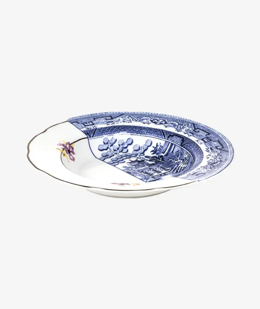 The split personality Hybrid dinnerware series fuses traditional Eastern and Western aesthetics in a playful but sophisticated way. Each piece of the collection melds two different china patterns – one from the East and one from the West – giving the impression that two separate plates, bowls, or cups have been joined together. To see the entire Hybrid dinnerware series, click here.