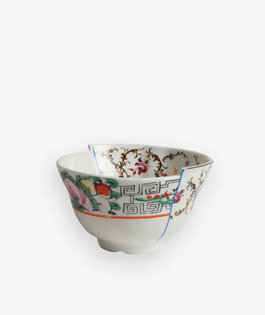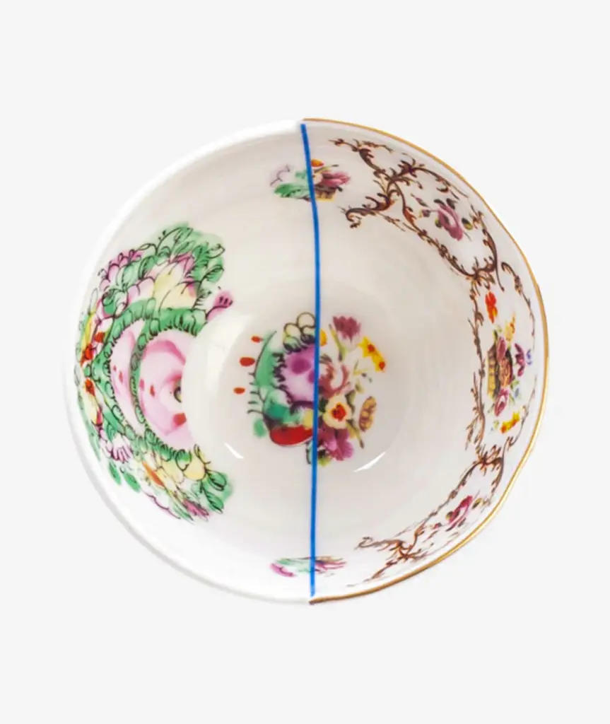 The split personality Hybrid dinnerware series fuses traditional Eastern and Western aesthetics in a playful but sophisticated way. Each piece of the collection melds two different china patterns – one from the East and one from the West – giving the impression that two separate plates, bowls, or cups have been joined together. To see the entire Hybrid dinnerware series, click here.