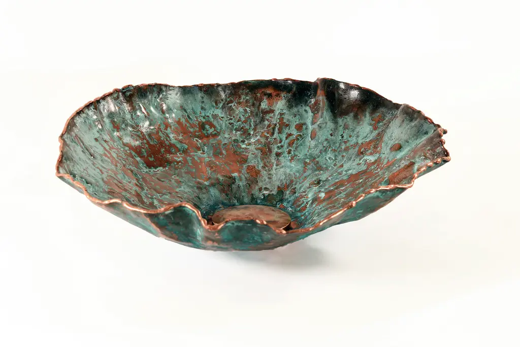 Copper bowl worked en-rely by hand. The oxydation of copper is realized only with natural product. Imprinted by Maker,Numbered