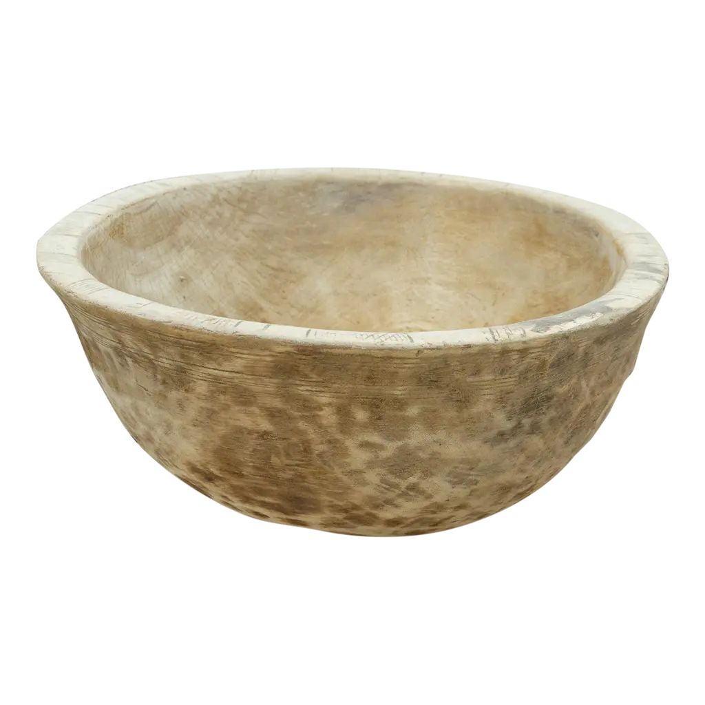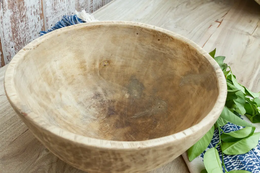 Hand-carved from single logs of indigenous hardwood in West Africa. The Tuareg community are a nomadic group traveling across the Saharan desert. Each bowl is unique featuring a fine decorative engraving with geometric lines or tribal design. These beautiful African bowls have a deep rounded shape and then have been used to transport and store milk and food. These bowls are authentic and will show wear, possible cracks.