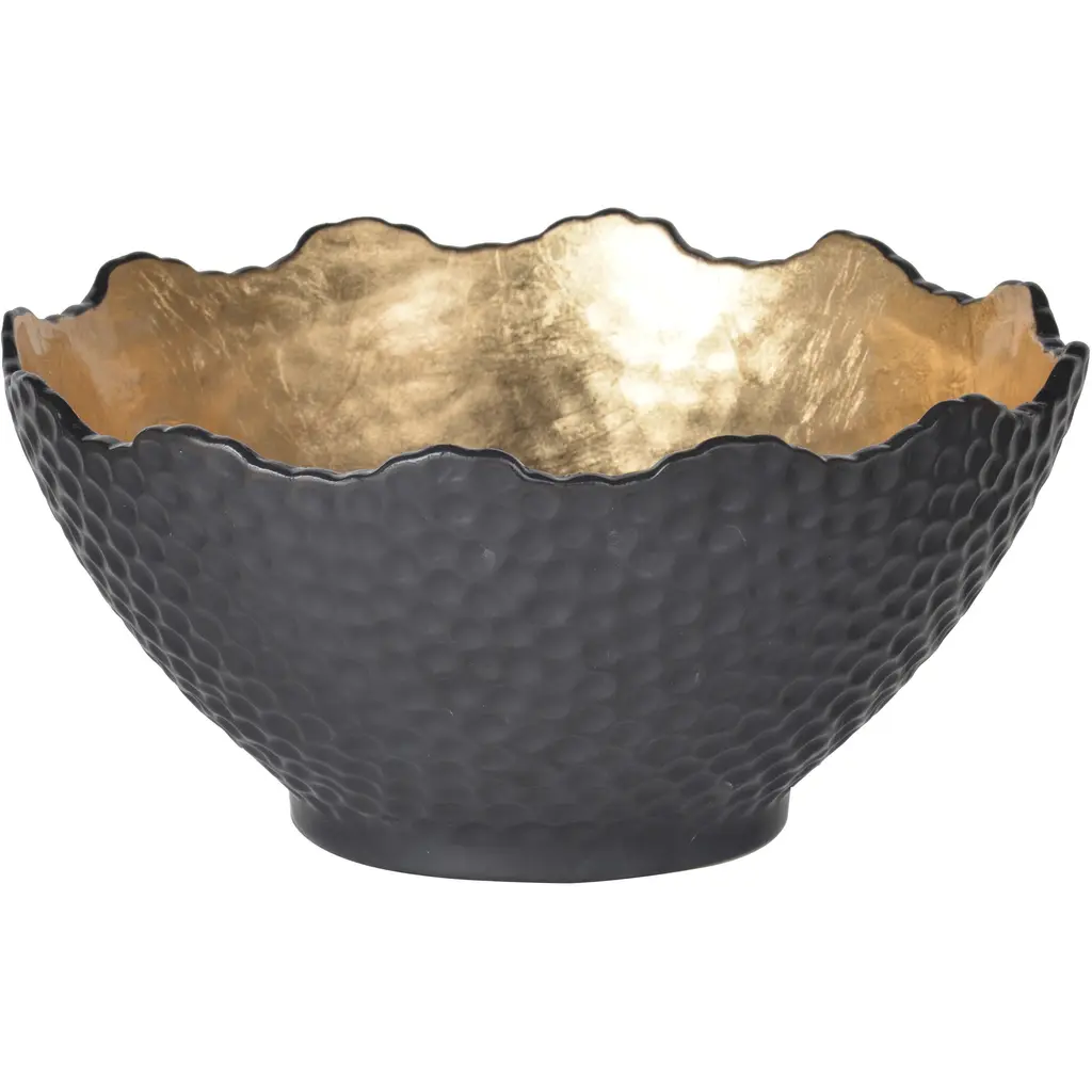 The Igneous Bowl is a naturally inspired decorative accent with a stunning contemporary design. This ovate brass vase in a Nickel finish features Gold Leaf accents around the rim, resembling flowing streams of lava.