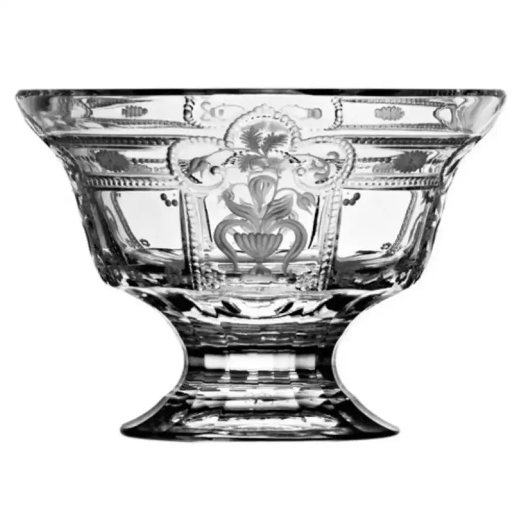 As you look at the Imperial Collection, you sense something extraordinary before you. This sophisticated pattern reveals the peerless talent of the engraver. This collection includes vastly time-consuming, hand-made designs with almost magical solutions, mixing flat cutting, sphere engraving and lifelike engraving techniques. Art aficionados applaud the superb craftsmanship and distinguished artistry found inherent in every piece of Varga Art Crystal. From the Varga design studios and forty person glassworks in Budapest, Hungary, famous husband and wife team Ildikó and Sándor Varga – a third generation glass master – create crystal artwork that graces palaces, embassies, museums and celebrity homes around the globe. Each piece of Varga is an original – skillfully and creatively crafted entirely by hand. Each hand-cut stem or intricately engraved crystal masterpiece is individually signed by hand and may require months to craft. Imagine an artist moving his canvas against a fixed brush to create his masterpiece: this is the essence of the rare art of copper and diamond-wheel engraving that is practiced today only by a handful of highly skilled craftsmen.
