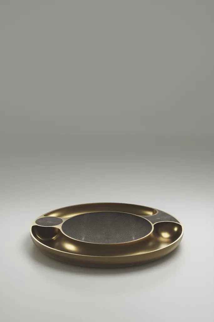 The Paris based label has distinguished themselves since their launch, with their iconic use of shagreen mixed with brass and other exotic materials. All furniture is handcrafted by skilled artisans, ultimately making each piece unique, designed in Paris and produced in the Philippines.The Iris bowl by R&Y Augousti is an elegant and versatile piece. An abstract interpretation of an eye, the piece is inlaid in cream shagreen, and bronze patina brass.