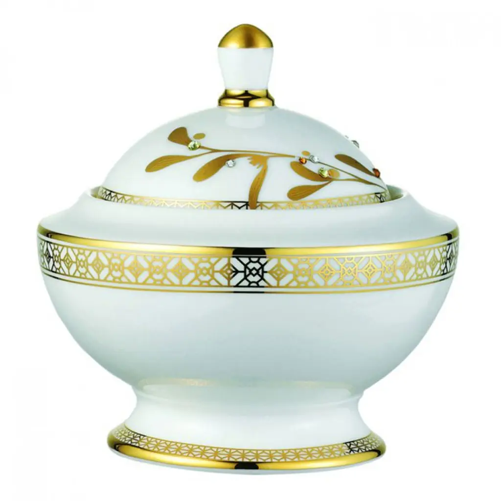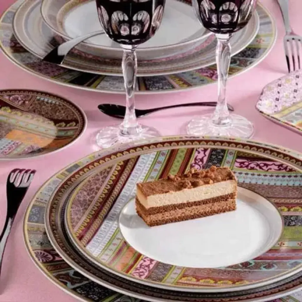Ispahan dinnerware invites you to travel the Silk Road with designs inspired by ancient silk from Persia and India. Ispahan dinnerware is a patchwork of colorful fabrics, with cloisonné matte gold and embellished with ruby tints. Five piece place setting includes dinner plate, dessert plate, bread & butter plate, teacup and saucer. This collection is available by special order; please allow 8-10 weeks for delivery. Founded in 1826, Deshoulières is the leading French porcelain maker today. Their fine white Limoges porcelain is strong enough for everyday use. Their style is well known around the world. The painters and decorators have generations of knowledge. Inspired by trends from both interiors and fashion, their patterns are always refined. Deshoulières embodies a true spirit of French style. With their new collections, Deshoulières delights everyone from homeowners to professional chefs. Invite elegance to your table with Deshoulières.