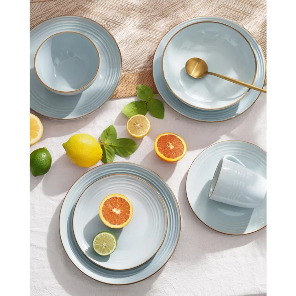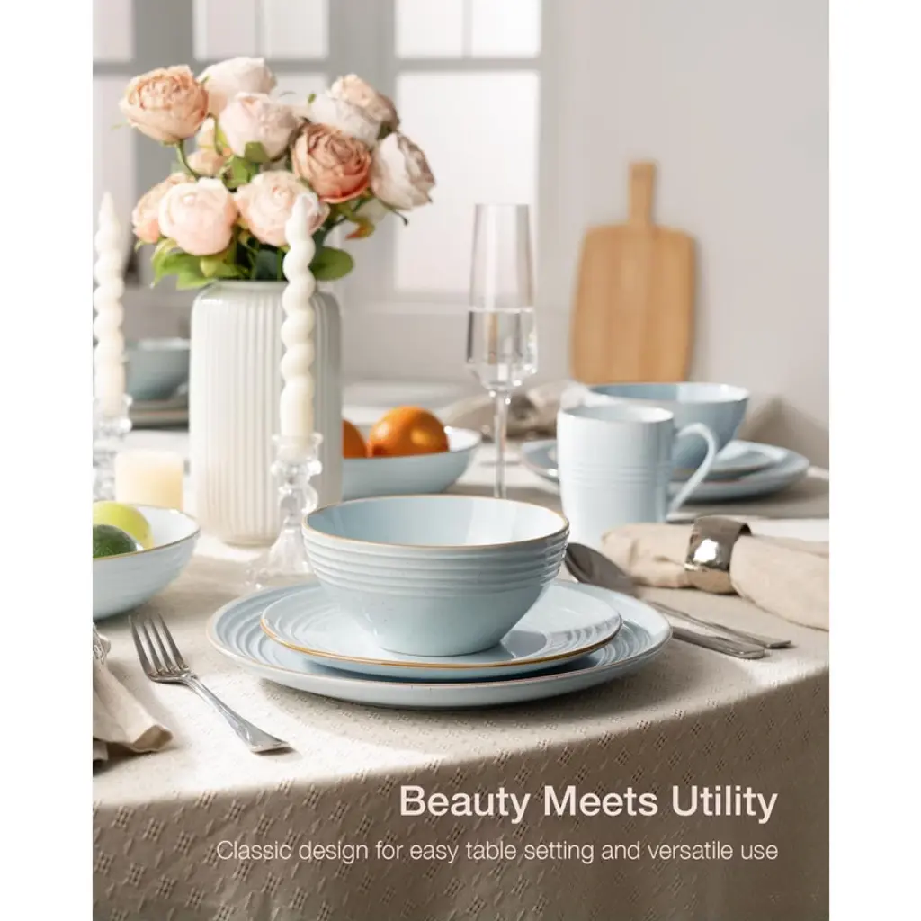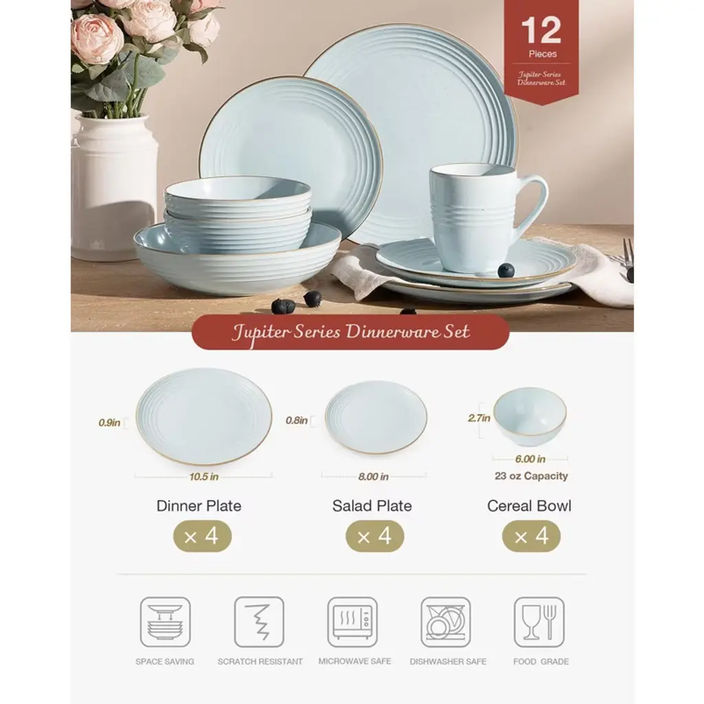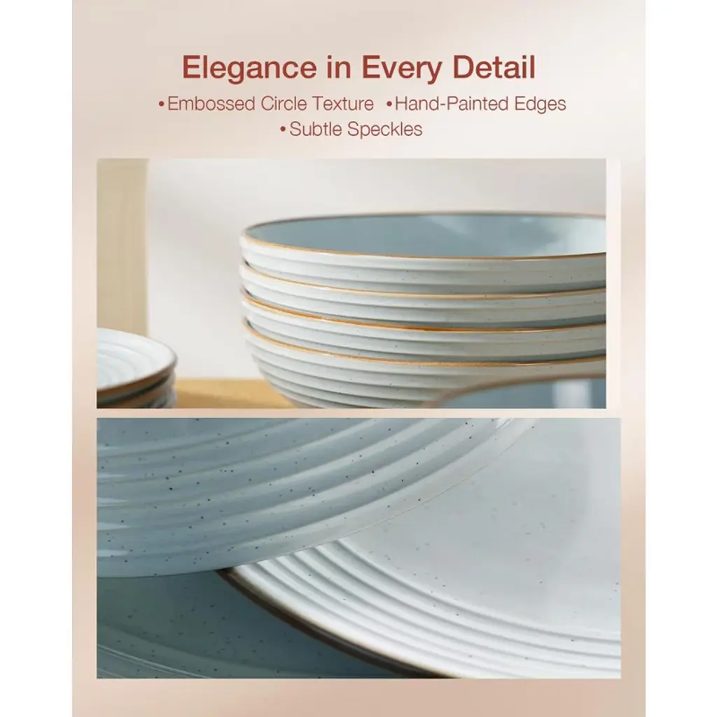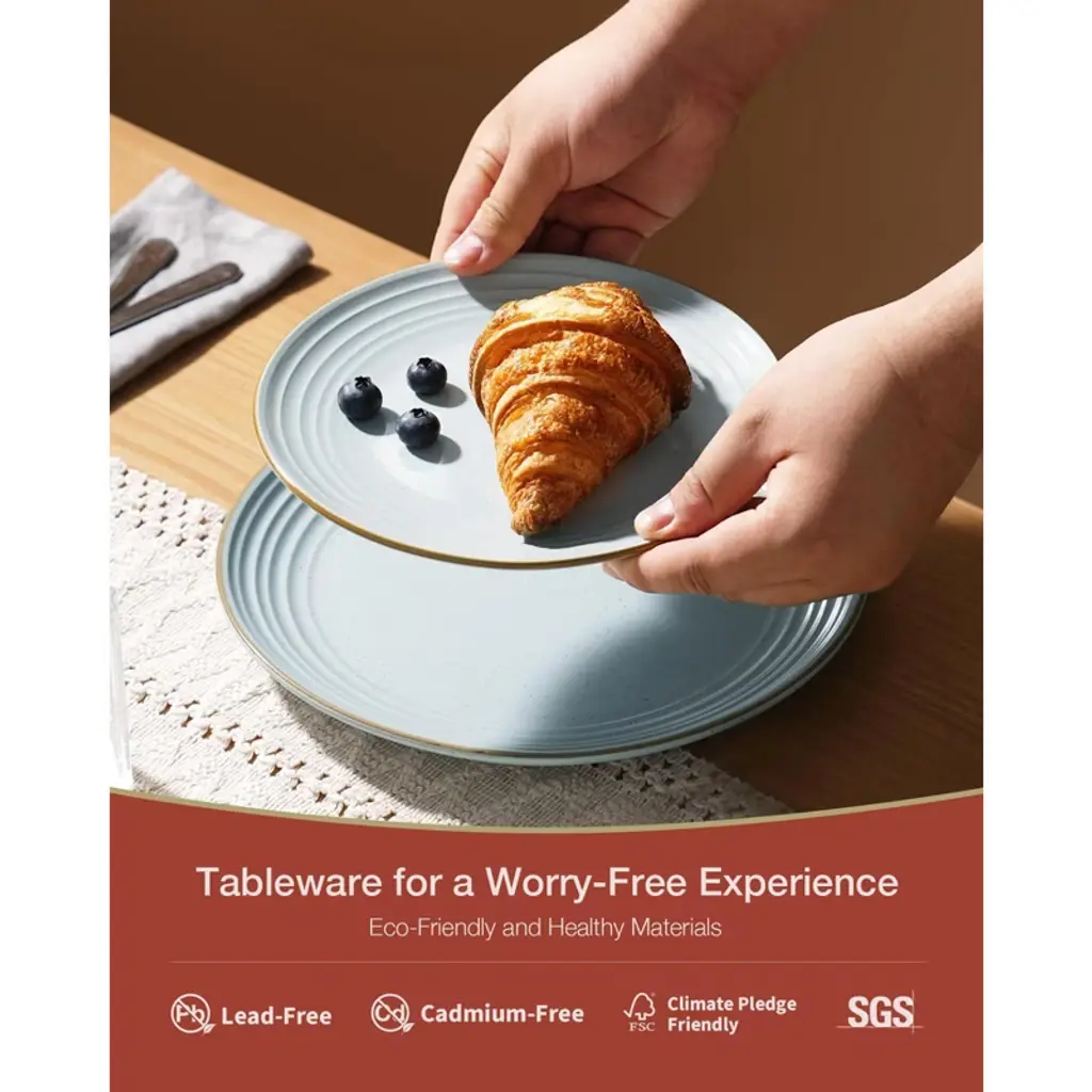 Upgrade your dining experience with this exquisite dinnerware set. It comes with 4 pieces each of 10.5" dinner plates, 8" salad plates, and 23 oz cereal bowls, perfect for daily meals. Crafted from natural materials with a food - grade glaze, it's free from harmful substances like lead, cadmium, BPA, and phthalates, ensuring a healthy dining option. The unique design features random speckled patterns, hand - painted edges, and embossed circular textures, creating a warm and inviting atmosphere. Fired at 2340°F for 13.5 hours, these dishes are highly durable, resistant to chipping and scratching. They are also safe to use in the dishwasher and microwave, making cleaning and reheating a breeze. Moreover, the set can be stacked to save cabinet space, and its smooth surface is easy to clean. Ideal for family dinners or casual gatherings, this dinnerware set combines style, functionality, and sustainability.