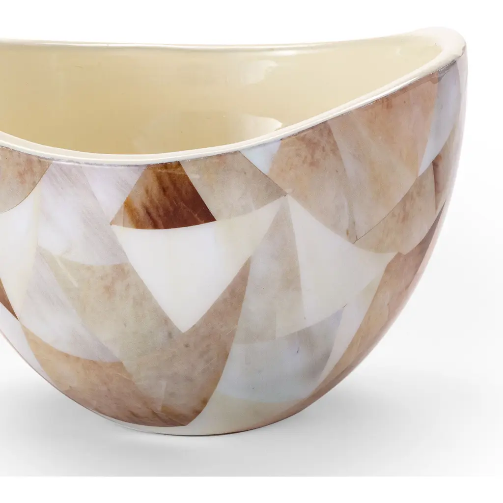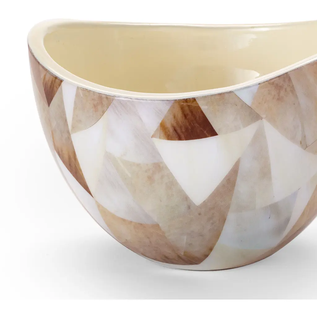 A colorful patchwork defines this essential enamel resin bowl, hand-polished with a high-gloss finish. Made with an inner substrate of mango wood, the Jake bowl looks great alone or as a trinket catchall.
