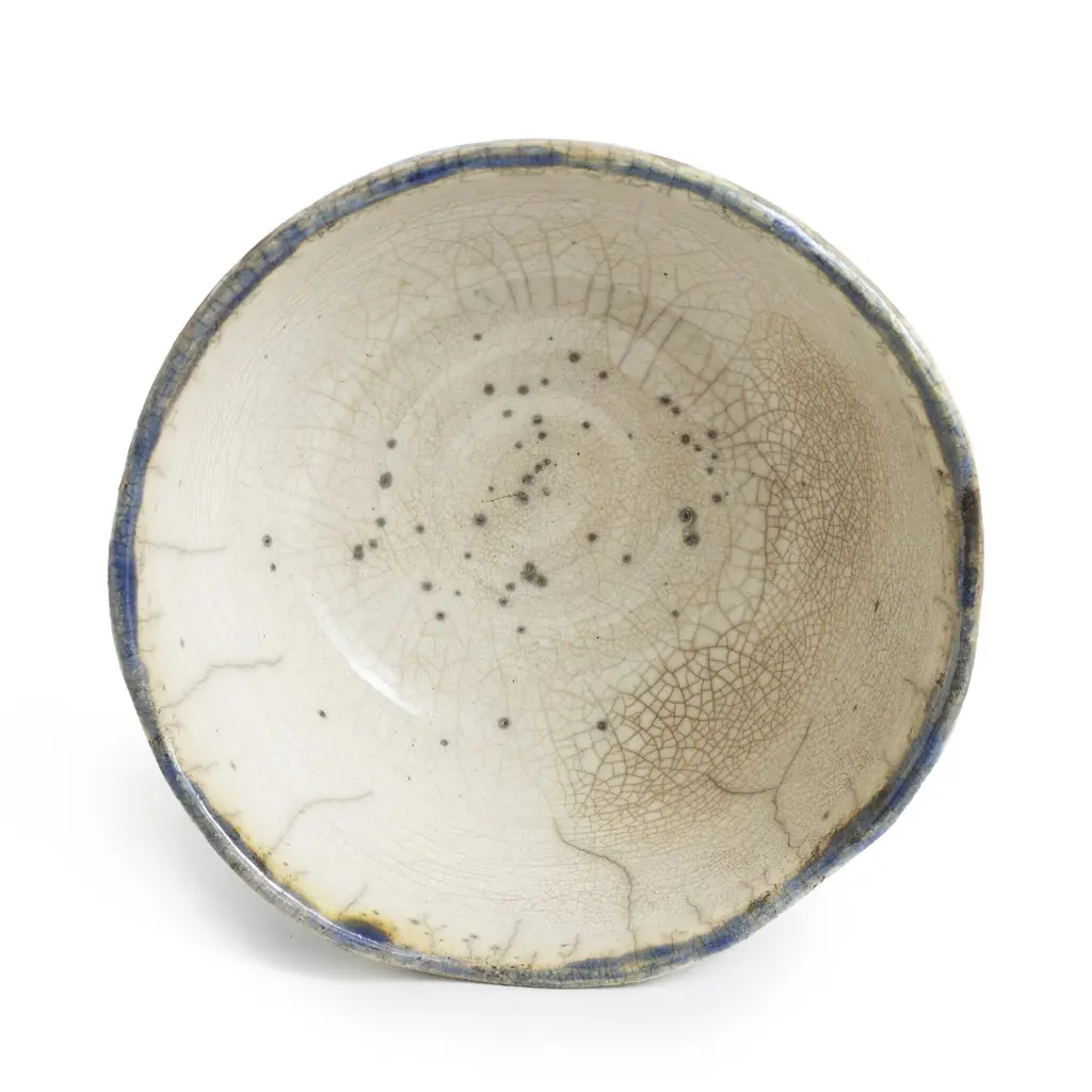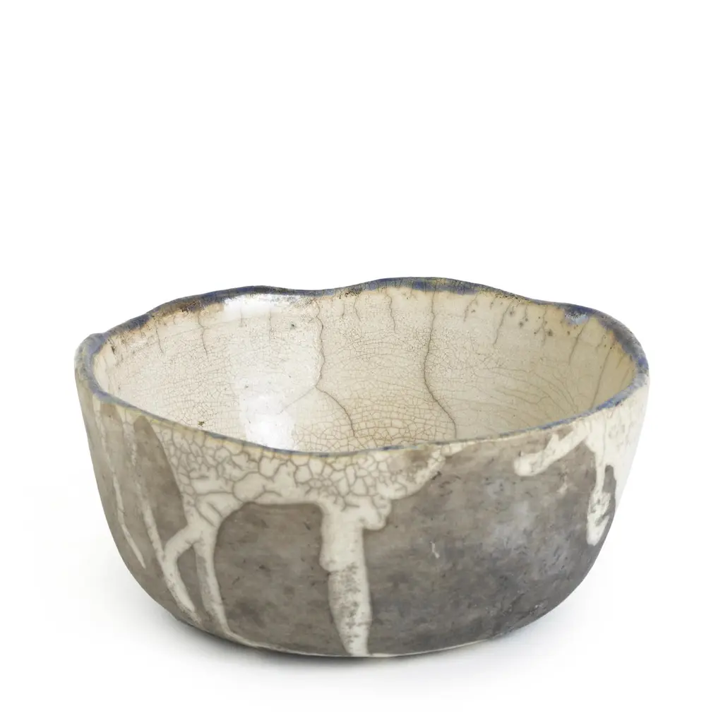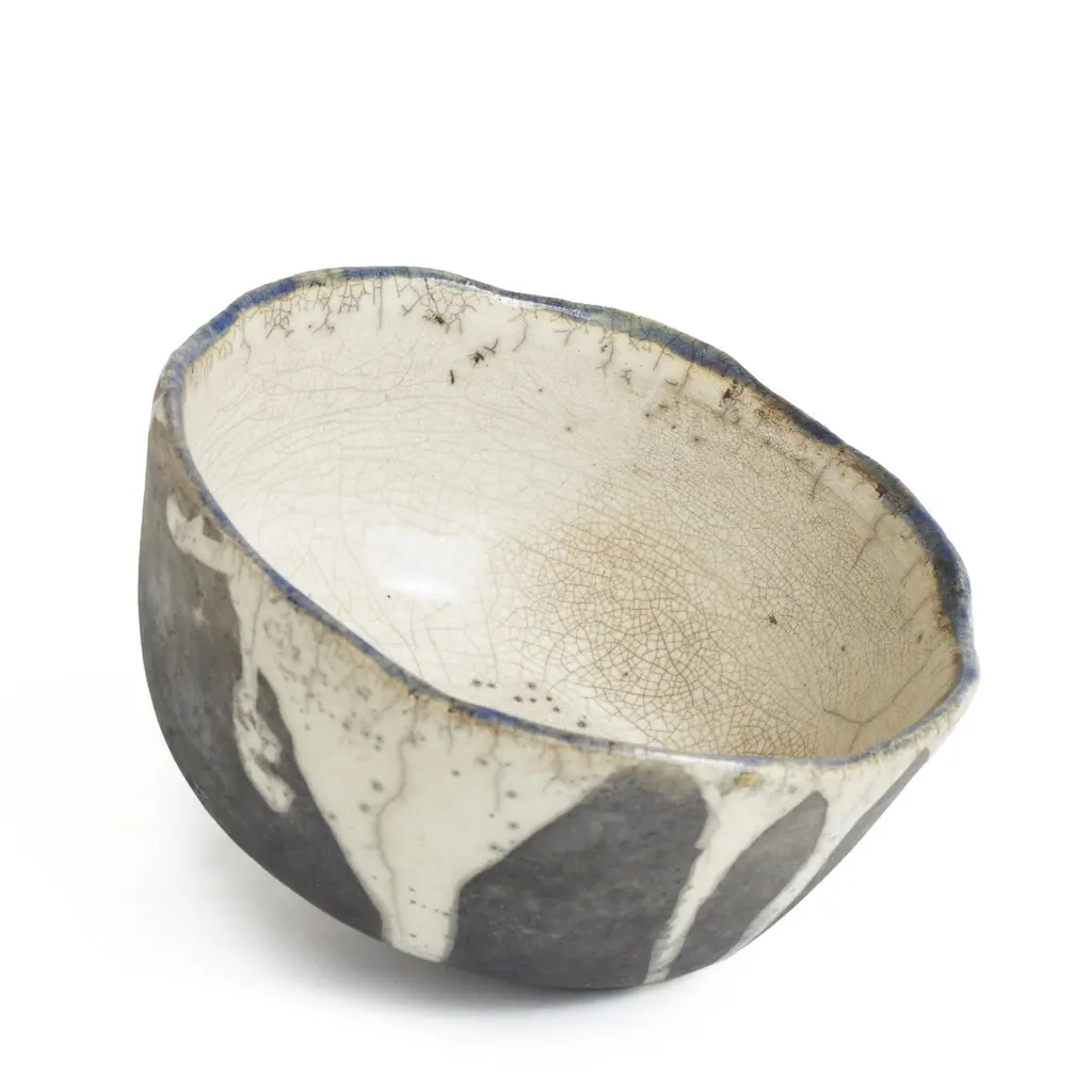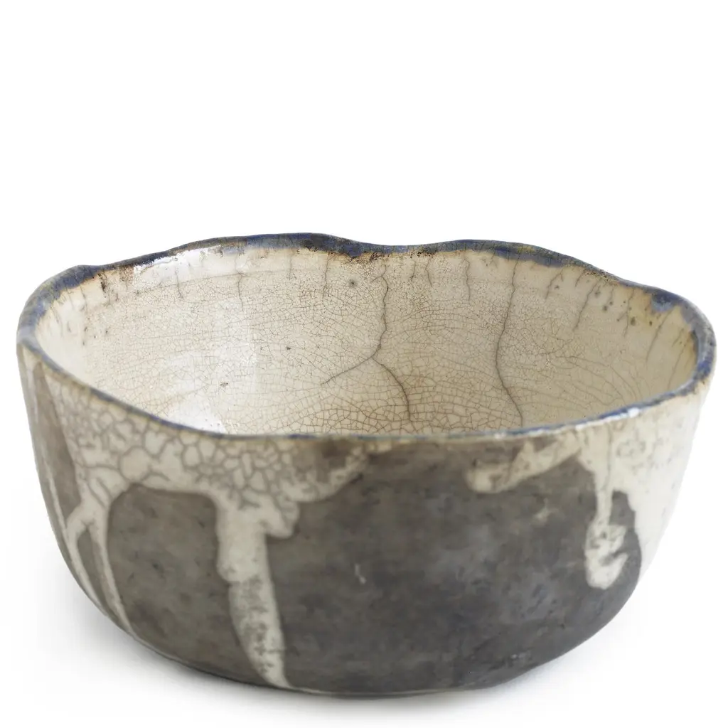 Japanese Tanoa Large Bowl Raku White And Black Ceramic
