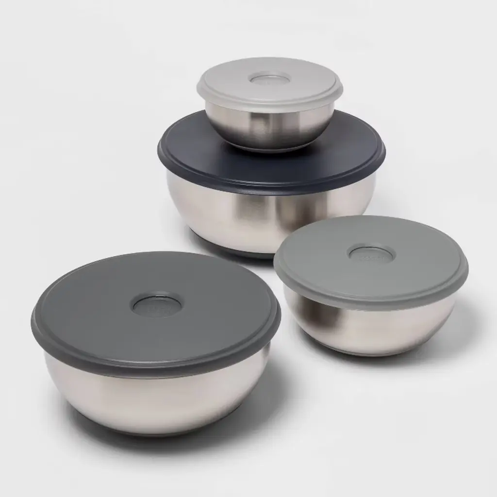 Joseph Joseph 4Pc Stainless Steel 100 Collection Nesting Prep & Store Bowl Set With Lids: Mixing Bowls, Non-slip Base