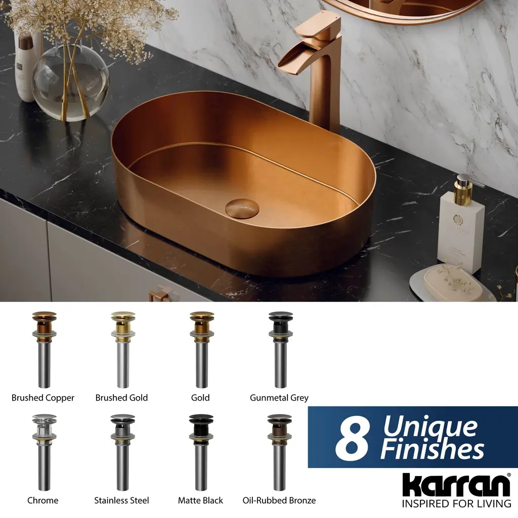 Karran Pop-Up Vanity Bowl Drain With Overflow - Brushed Copper