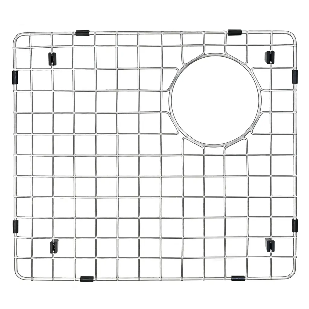Karran stainless steel bottom grids will help maintain the brand new look of your sink, preventing unwanted scratches and scuffs from pots and dishes while allowing water to easily drain. Designed to protect your sink from daily dishwashing tasks. Karran stainless steel bottom grids will also enhance the look of your quartz sink. - Constructed of solid T304 stainless steel to resist corrosion- Protective bumpers and plastic feet elevate grid and prevent slipping- Fits on QT-721 and QU-721- 1-Year Limited Warranty