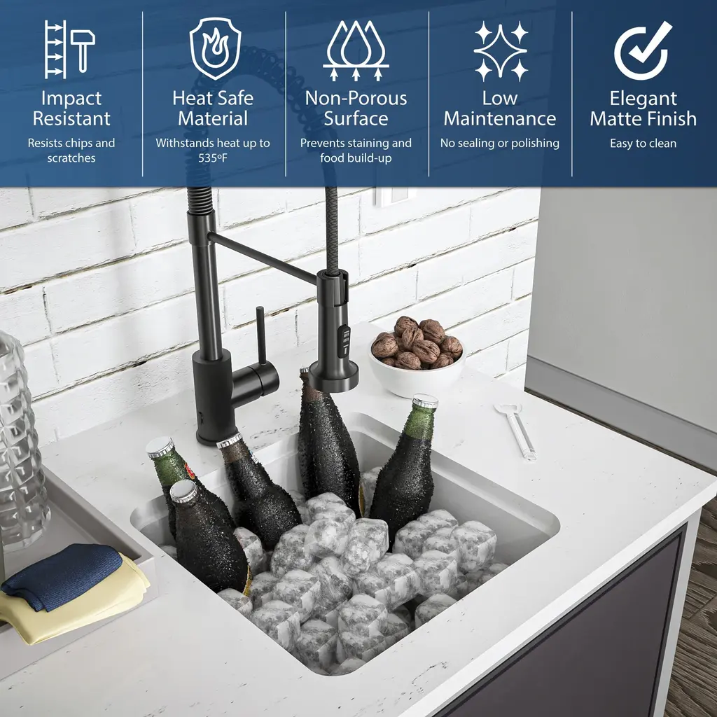 Karran Undermount Quartz Bar Single Bowl Sink - White