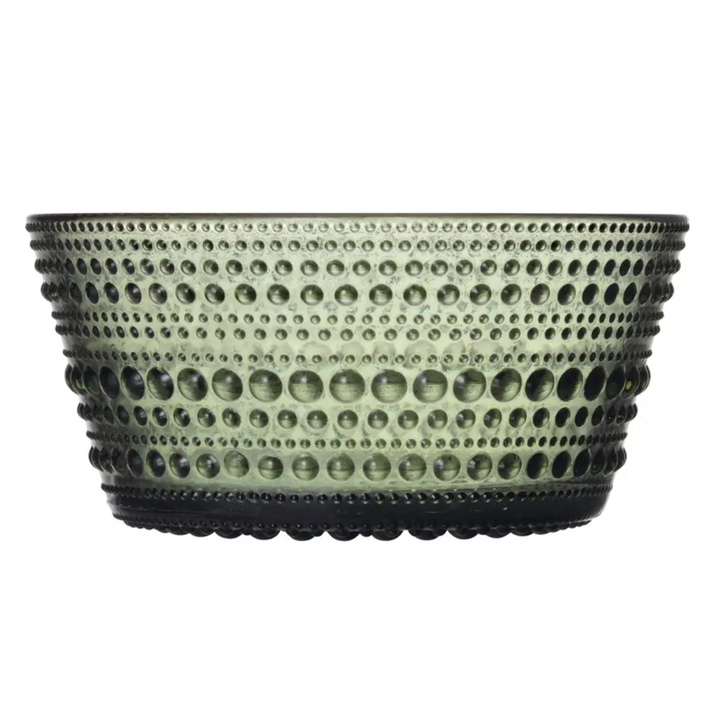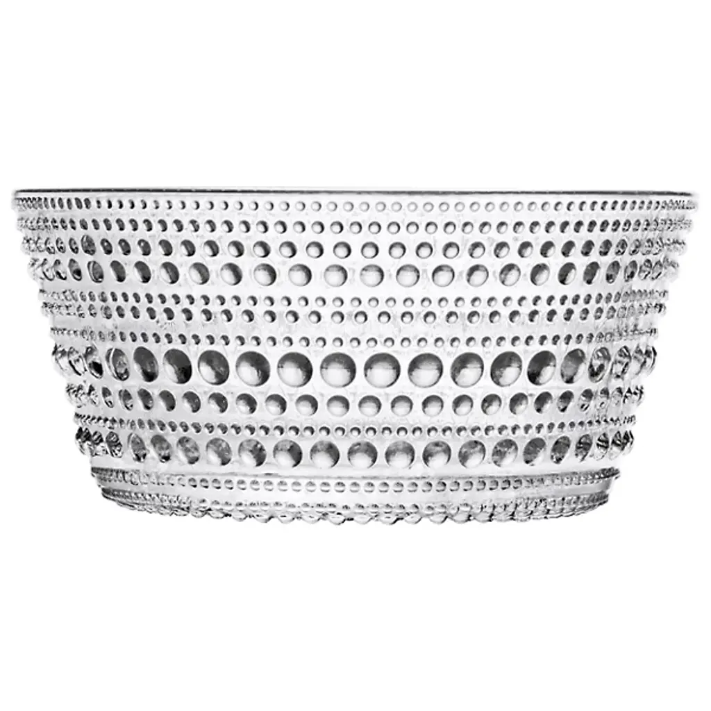 Iittala's Kastehelmi bowl is part of the popular glass collection designed by Oiva Toikka. In 1964 Toikka’s aim was to design a pattern that would conceal the joint marks in pressed glass. The result was Kastehelmi, Finnish for dewdrop, that features delicate glass droplets arranged in a series of rings. Kastehelmi became one of Toikka’s most beloved series of glassware and it was manufactured until 1988. The most popular items were brought back to Iittala’s production in 2010. Kastehelmi plays with light in the most beautiful way and suits any table setting.