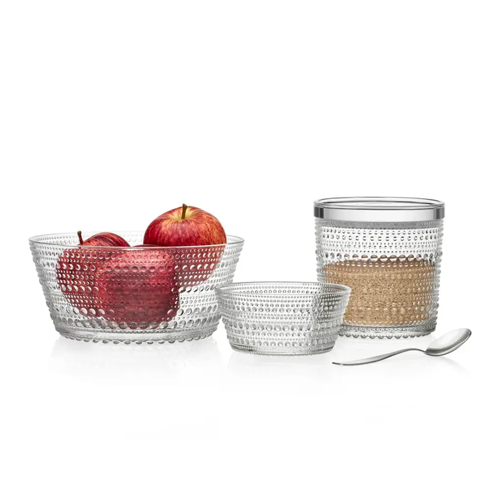 Glistening like dewdrops in the morning sun, the Kastehelmi Bowl from iittala is a creative way to bring the outdoors in. Available in cool, crisp colors, the ornate details of this bowl create a sparkling and pleasantly textured tabletop elevated for evening meals or kept low key as part of a morning routine.Highlights