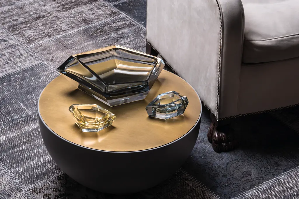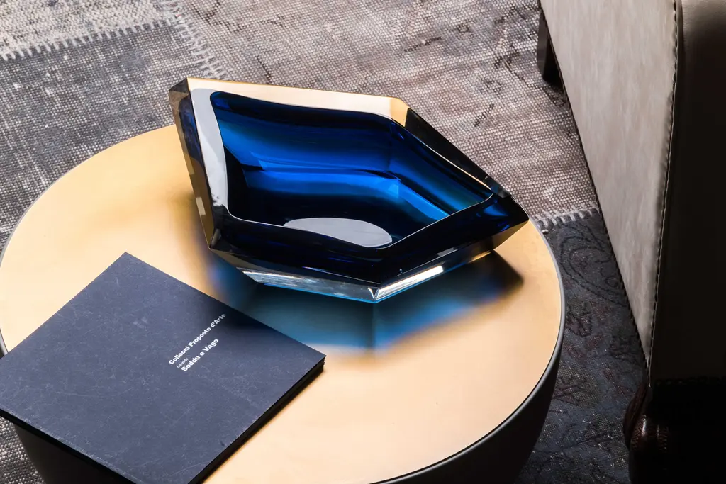 Karim Rashid has conceived for Purho a mini collection of bowls and vases characterized by their faceted, structural form and abstract elegance. Irresistible because of the unusual and geometrical surfaces and bold colours, Kastle are available in different sizes offering a wide range of uses. Kastle are made of Murano glass although mirror finish is available only on request. Available in 21 colors: 01. ice crystal 02. milky white 03. honey 04. ruby venice 05. amethist pink 06. coffee 07. amber yellow 08. capri yellow 09. mandarin orange 10. oriental red 11. green apple 12. caribbean green 13. green lagoon 14. emerald green 15. blue mediterranean 16. peacock blue 17. ocean blue 18. florence purple 19. london grey 20. black gondola Signed by Maker,Labeled by Maker