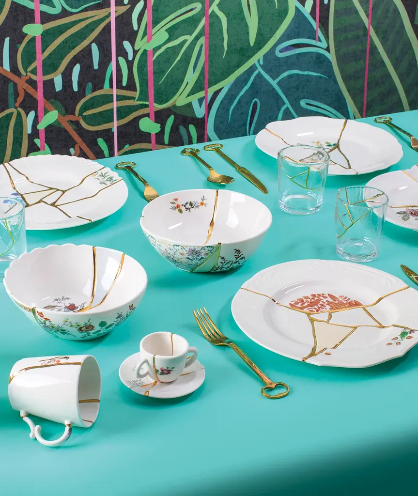 Kintsugi Japanese art assumes contemporary shapes in this collection from Seletti, designed by Marcantonio. The delicate porcelain is glorified and enriched with gold fragments for a tableweare collection made of charming and unexpected compositions. To see the entire Kintsugi dinnerware series, click here.
