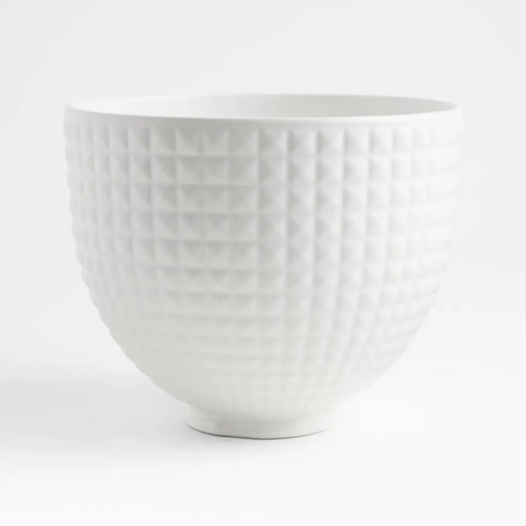Accessorize your KitchenAid® Tilt-Head Stand Mixer* with this 5 Quart Black Studded Ceramic Bowl, a perfect accessory for your stand mixer. This beautiful bowl creates a bold statement on any kitchen counter.The bowl is made of durable ceramic to resist chipping, cracking, crazing, and staining. Additionally, it is freezer, microwave, dishwasher and oven-safe up to 475 degrees, making it a versatile kitchen tool. Designed to fit all 4.5- and 5-quart KitchenAid® Tilt-Head Stand Mixers*. * sold separately.