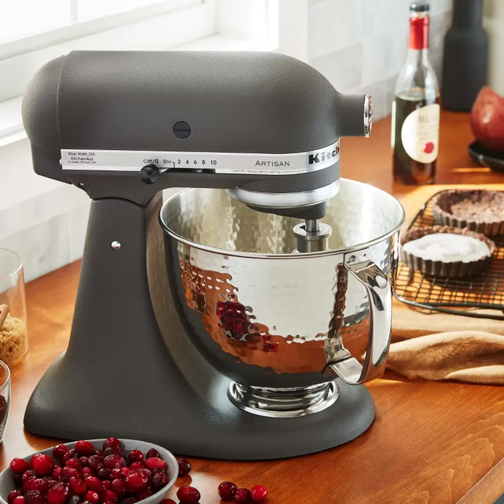 Celebrate natural beauty and customize your KitchenAid® Stand Mixer with our 5 Quart Hammered Stainless Steel Bowl - hand-finished and polished for an authentic yet modern look. This bowl offers the capacity to mix dough for 9 dozen cookies* in a single batch, features an ergonomic handle for easy use, and is dishwasher-safe. Fits all 4.5 Quart and 5 Quart KitchenAid® Tilt-Head Stand Mixers, sold separately. *Using the flat beater; 28g dough each