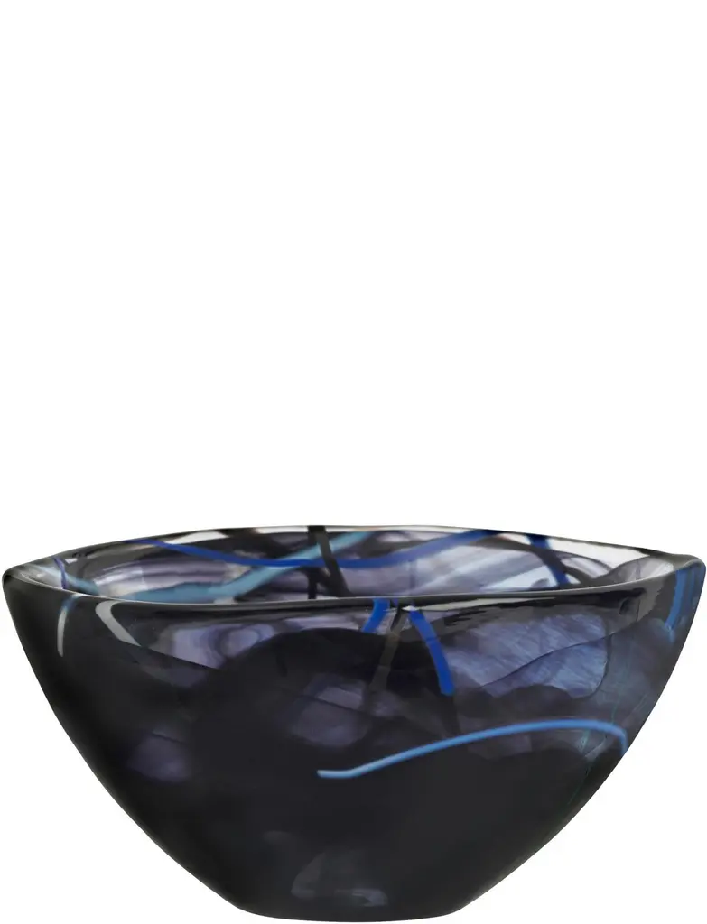 Contrast from Kosta Boda is made using a technique called centrifuging. This technique creates veils of color within the glass, and vibrant glass canes are added during the process, making each product unique. It’s all about the contrasts! The small bowl is absolutely perfect for snacks or other sides. Design by Anna Ehrner.