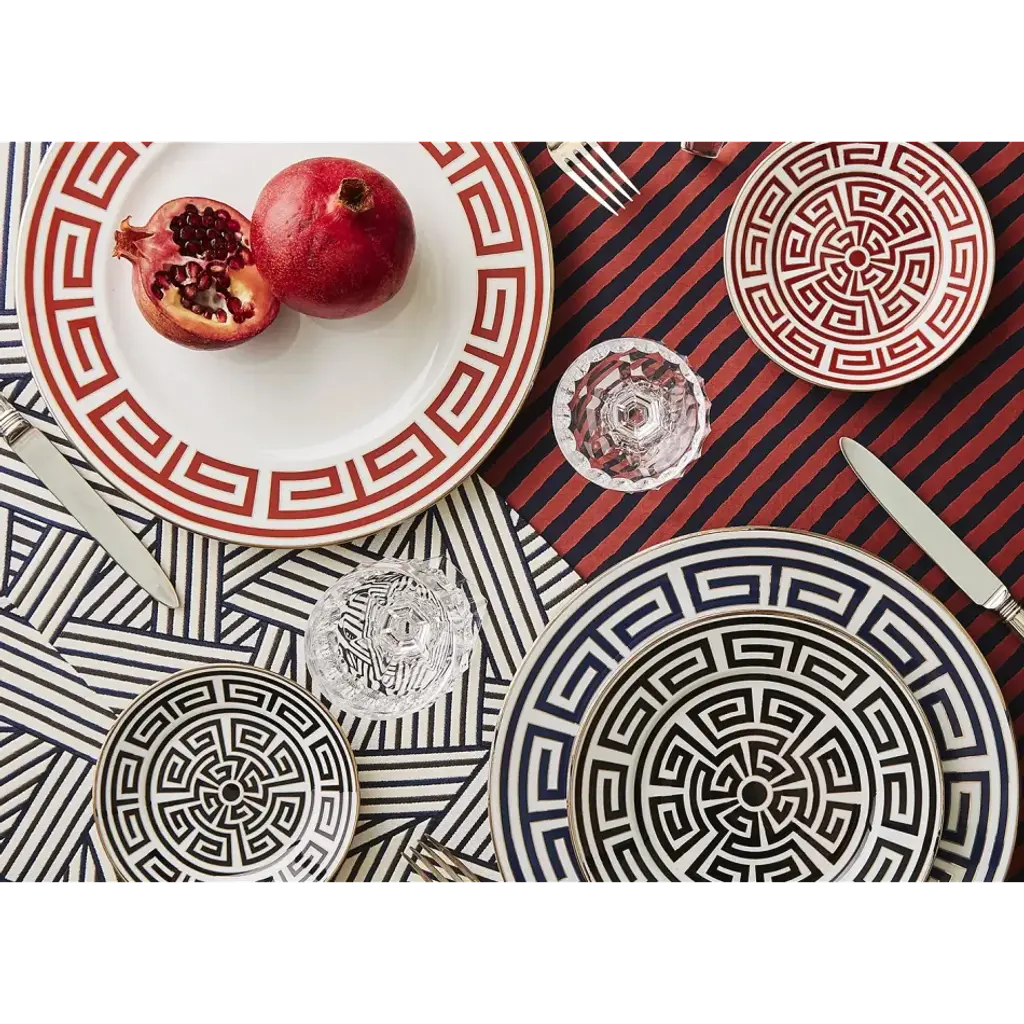 Gio Ponti served as the Ginori Manifattura's artistic director from 1923 to 1933, and in 1926 many designs took shape in his irrepressible imagination. Among these, Ginori 1735 Gio Ponti Labirinto, a sophisticated intricacy of straight lines that, chasing after one another without ever touching, generate movement, dizziness, bewilderment. A Labyrinth, indeed, in which losing oneself is beautiful, in which there are no more coordinates. Above and below. Right and left. In which ancient and modern are no longer before and after but a unique design: a pattern that repeats in four color variants - black, scarlet, emerald and sapphire - on all of the porcelain plates, the teacups and coffee cups, the serving platters and the bowls in the collection.
