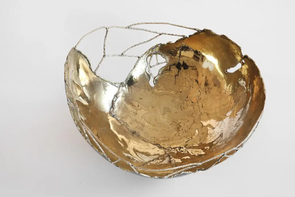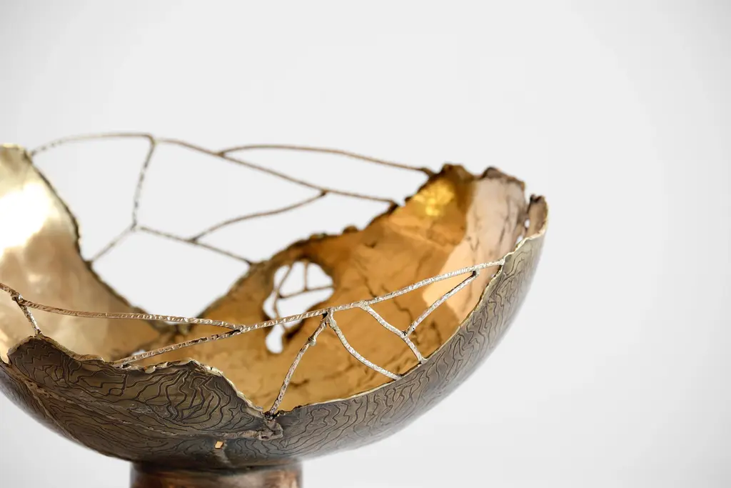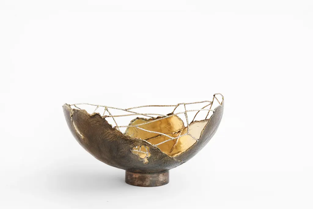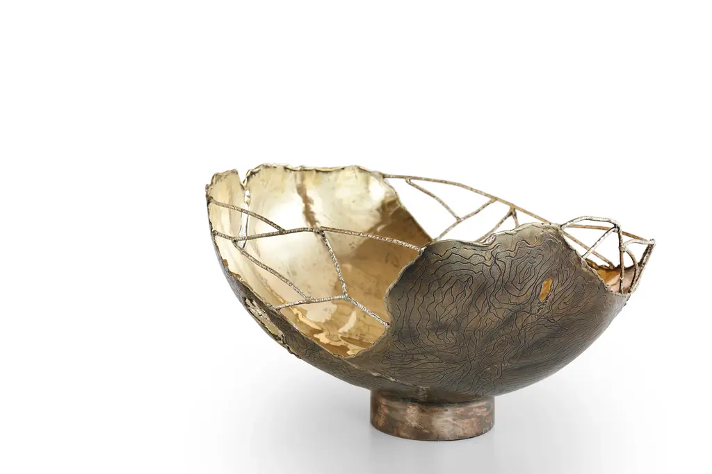 Large Brass Bark Bowl from Dal Furlo, in New conditions. Designed from 2000 Imprinted by Maker,Numbered,Imprinted by Maker,Numbered