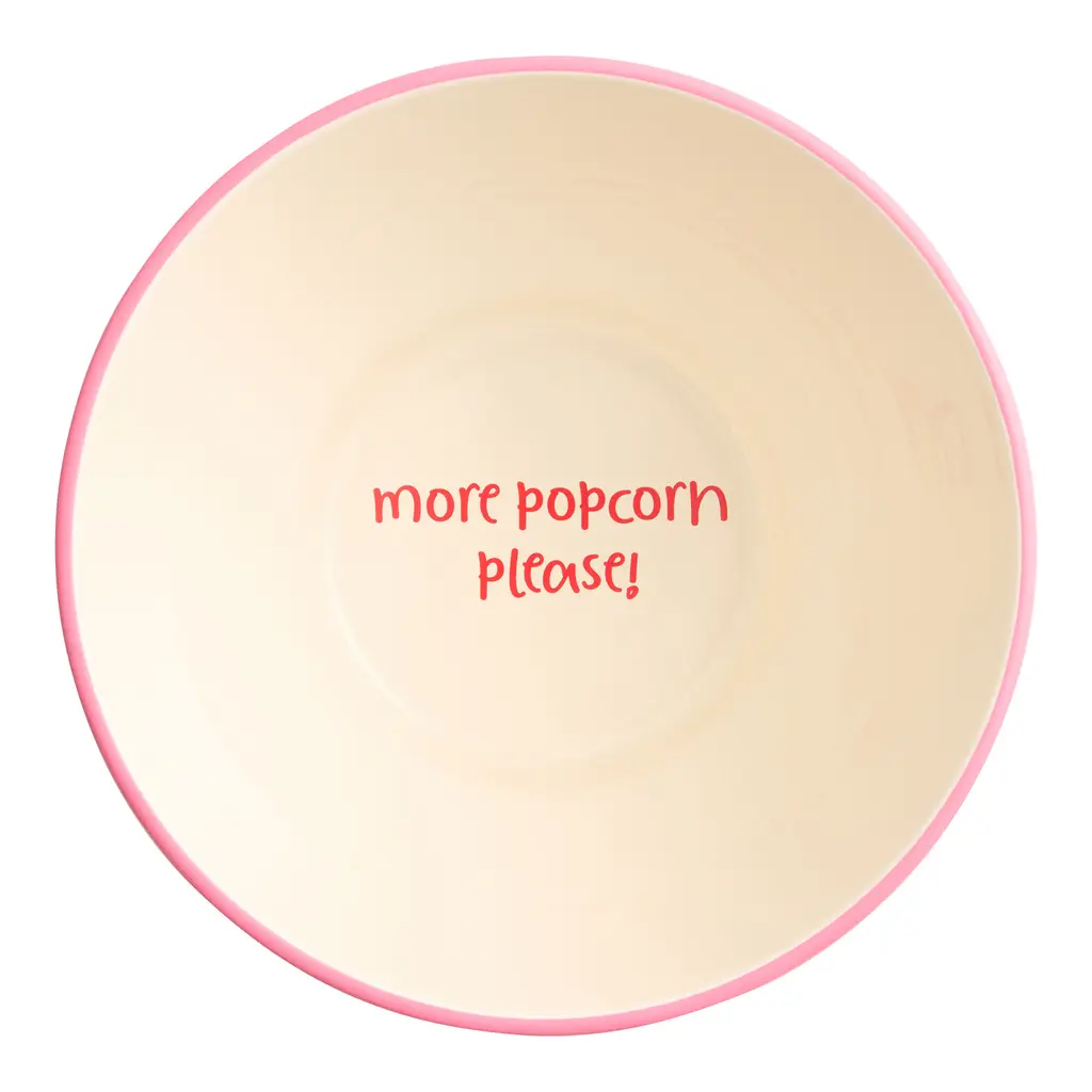 Pile the popcorn high in our large enameled serving bowl to entertain a crowd or snuggle up for movie nights. Sized for sharing, this retro popcorn bowl features a stain-resistant coating in ivory with happy red lettering and a cheerful request for "More Popcorn Please" in the interior. Durable and always easy to clean, you'll be snacking from this affordable bowl for years of hangouts, game nights, and TV-show binges.