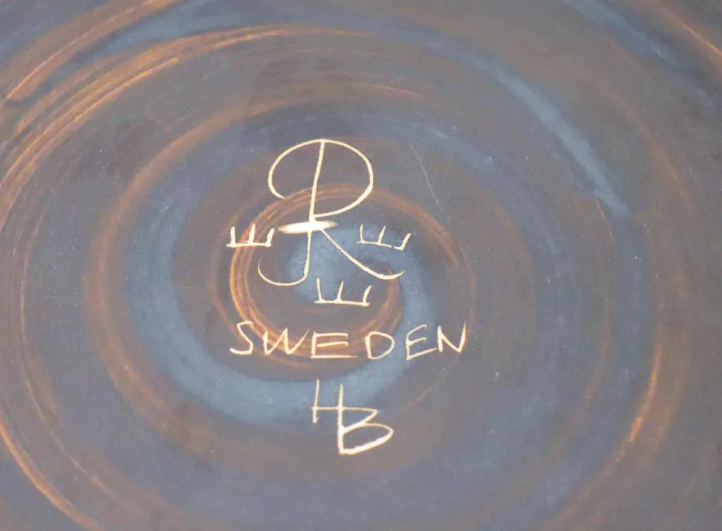 A squared bowl designed by Hertha Bengtson at Rörstrand, the bowl is 29,5 x 29,5 cm (11.8" x 11,8") in diameter. It is in excellent condition except from some minor marks and scratches and marked as 2nd quality.