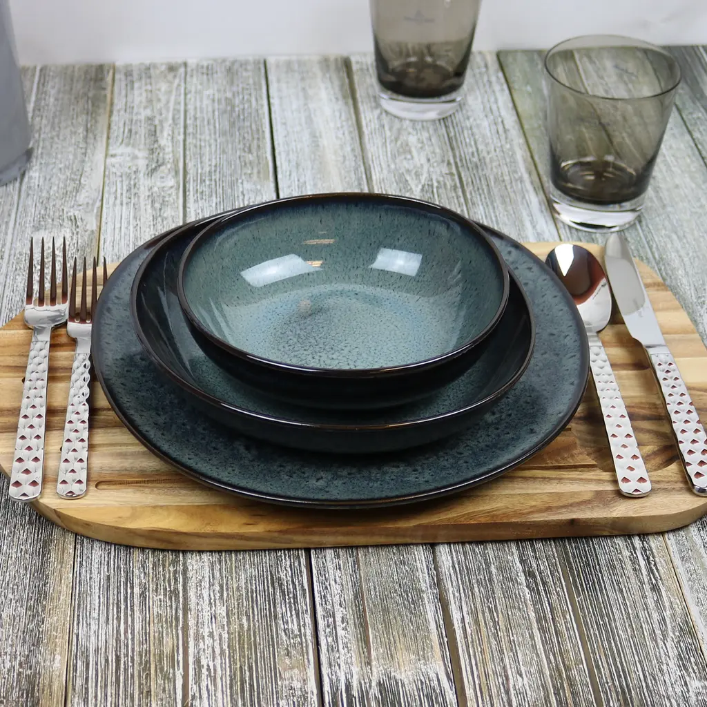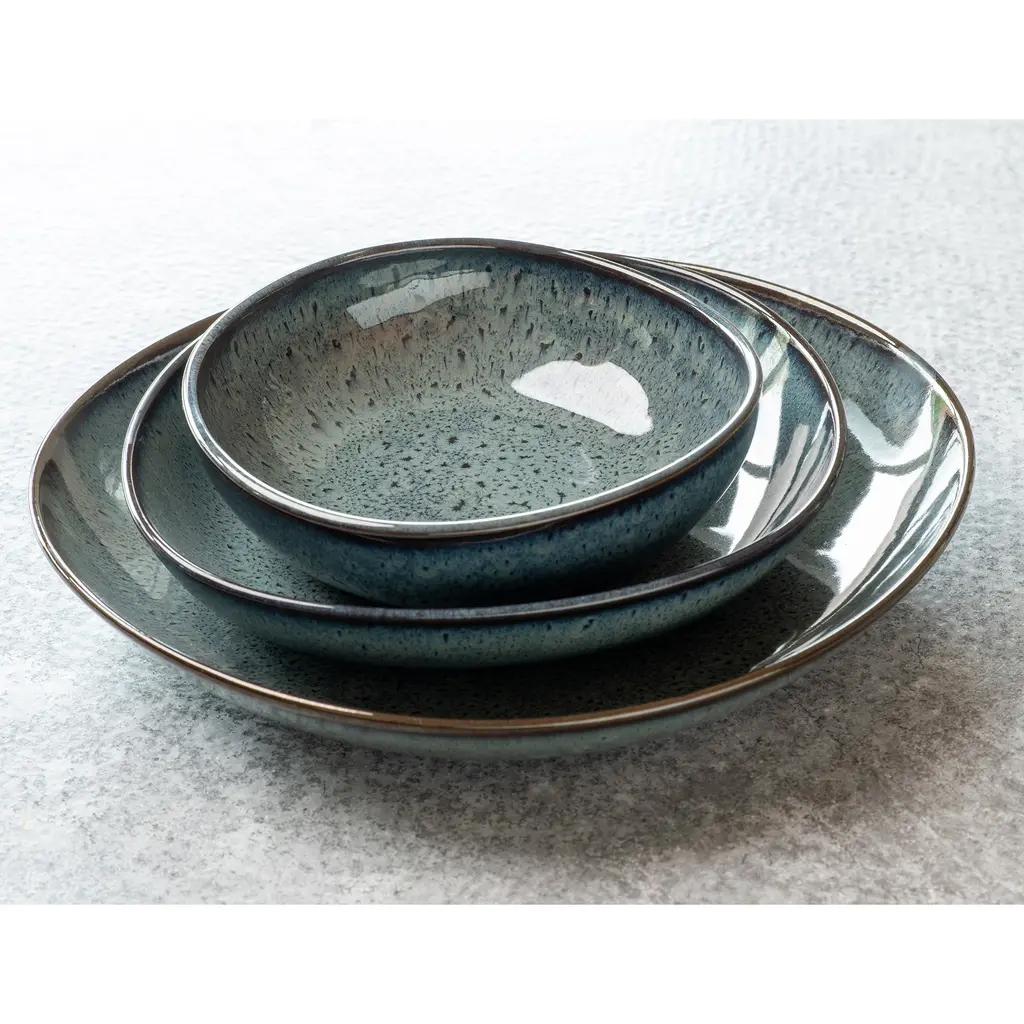 The Lave Stoneware Collection offers artisanal appeal to your tabletop with asymmetrical shapes and a special reactive glaze rendering each piece unique.