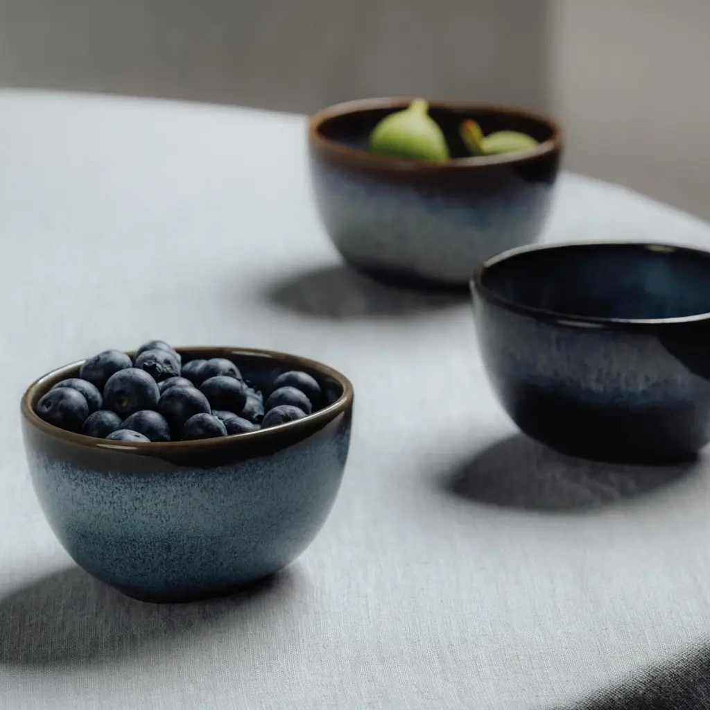 The Lave Stoneware Collection offers artisanal appeal to your tabletop with asymmetrical shapes and a special reactive glaze rendering each piece unique.