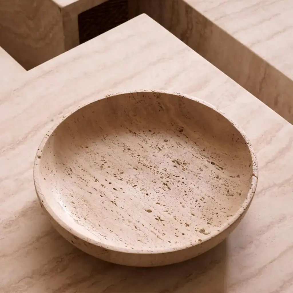 Bowl Lilia travertine all in solidtravertine in polished finish.