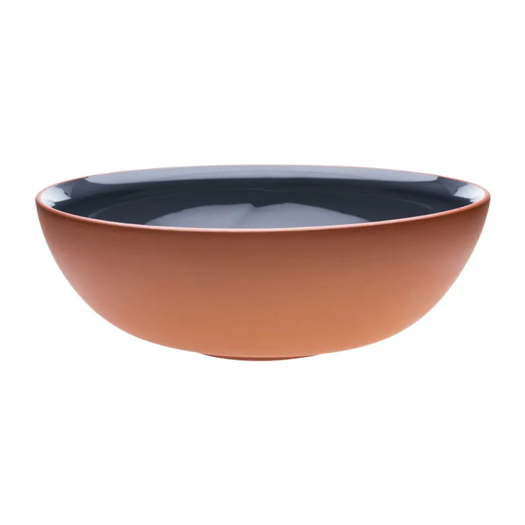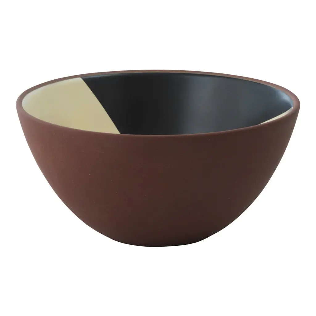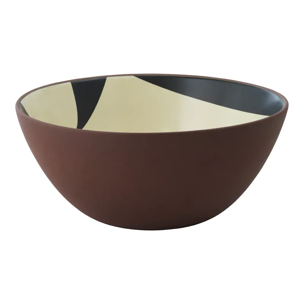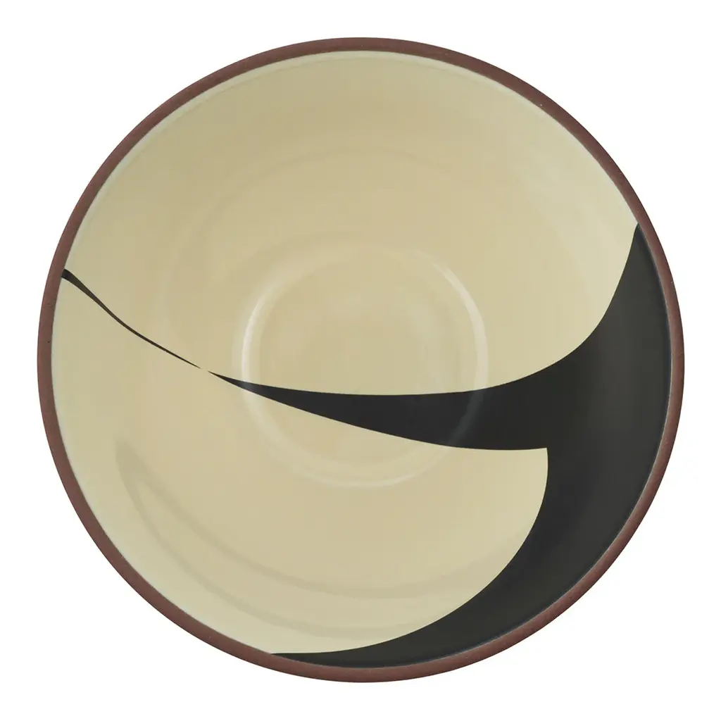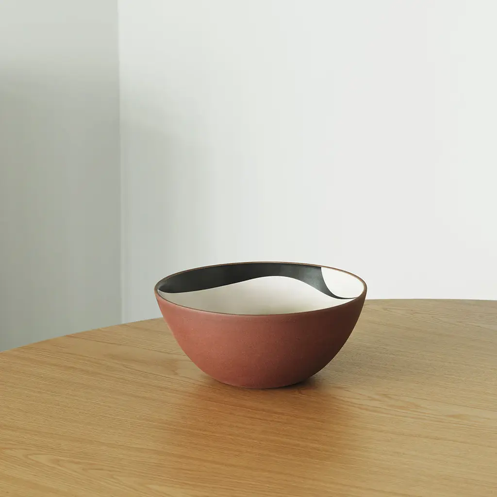 Line is a series of bowls made of red clay and printed with decorative patterns of black and cream colored decal print on the inside. Due to the manufacturing process, each bowl is unique. Line Bowl is available in three different sizes.